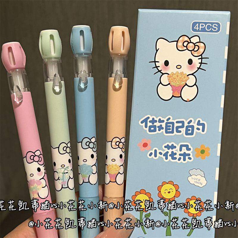 卡通可爱KT猫按动笔刷题笔简约小清新凯蒂猫学生用0.5黑色中性笔