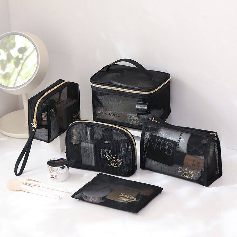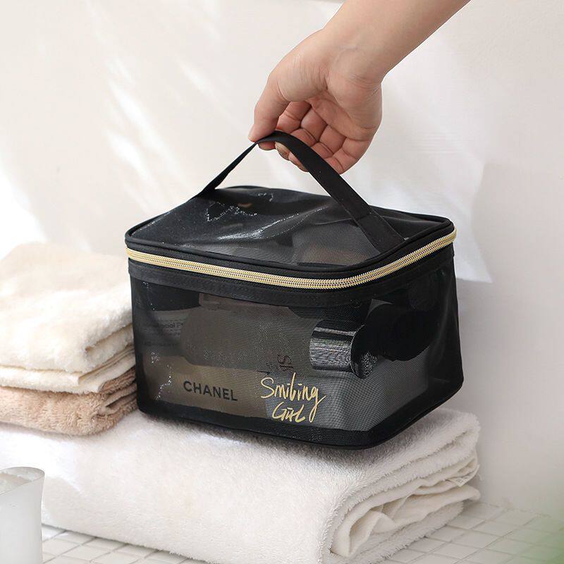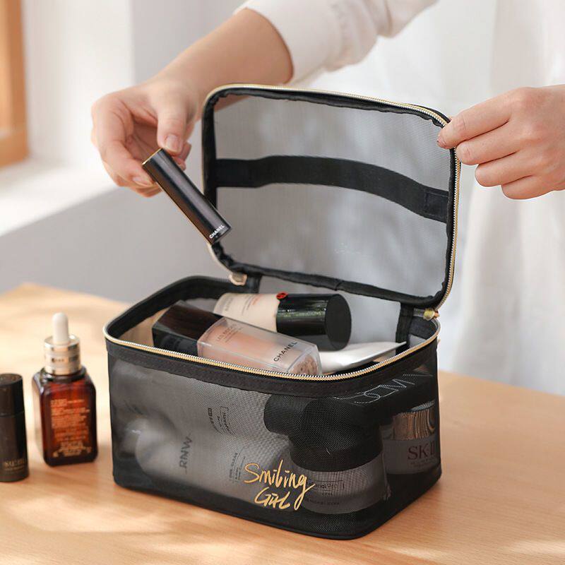 网纱便携化妆包女旅行透明洗漱包护肤品口红眼影刷子收纳袋盒高级