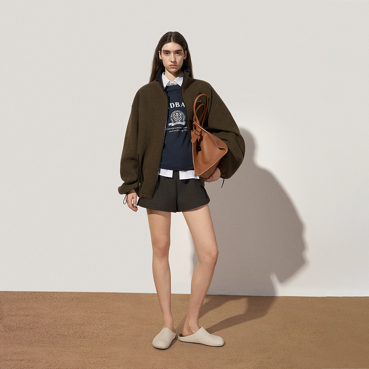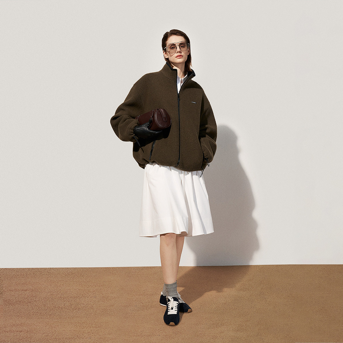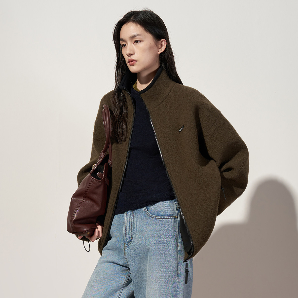 【新品】OCHIRLY欧时力 进口羊毛双面绒感立领外套休闲宽松25秋冬