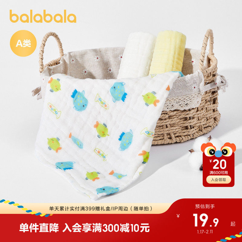 巴拉巴拉新生儿小方巾婴儿用品初生宝宝纯棉舒适简约清新三件装萌