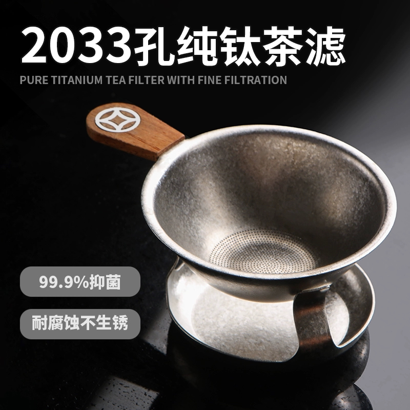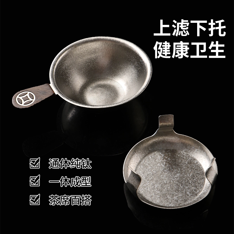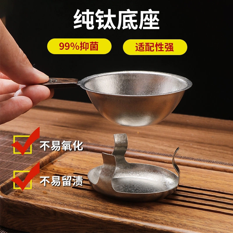 纯钛茶漏茶叶过滤器功夫泡茶配件茶隔细密钛滤网底座茶滤茶水茶渣
