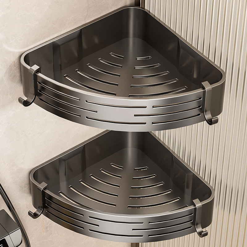 枪灰卫生间置物架浴室三角架子免打孔壁挂厕所洗手间洗漱台收纳架
