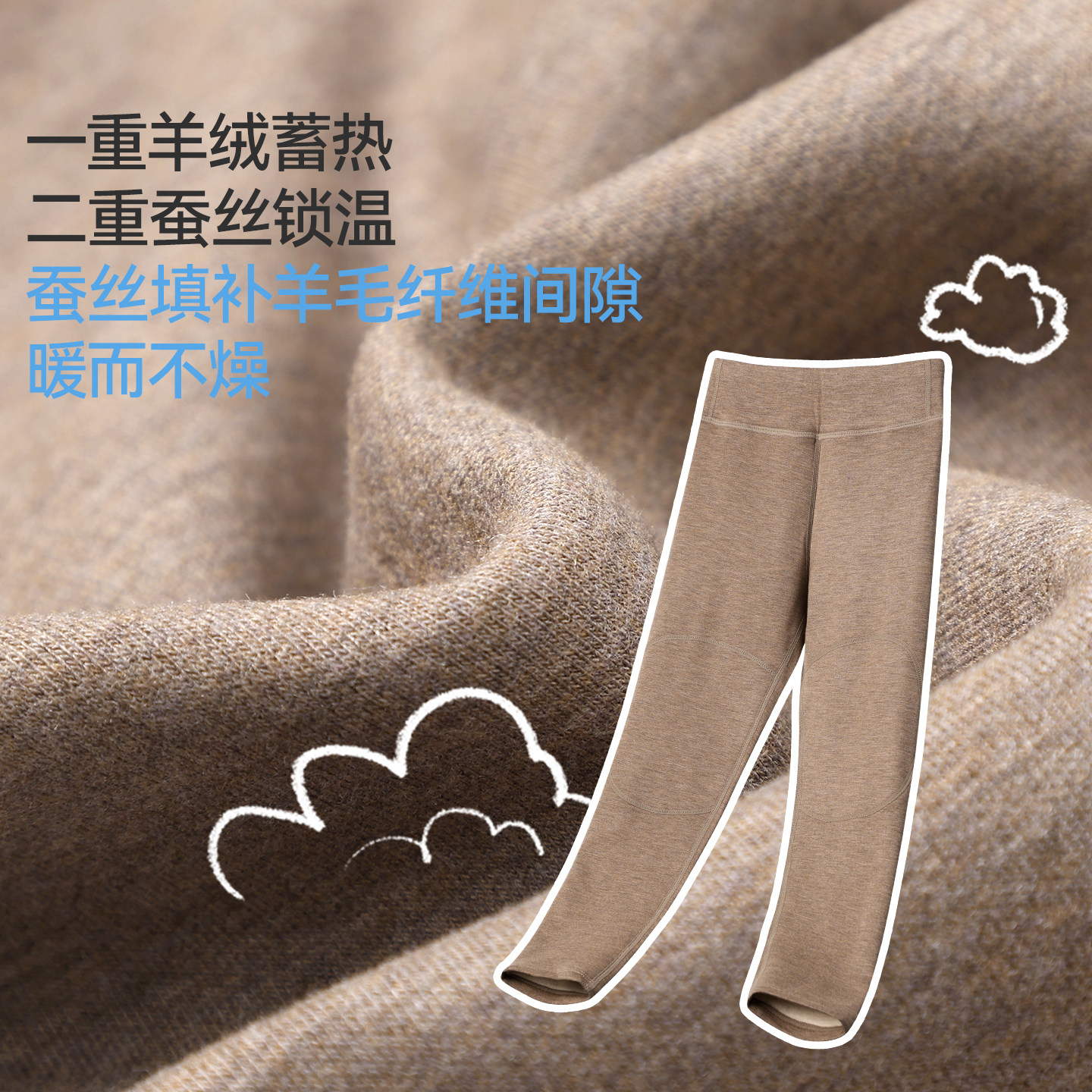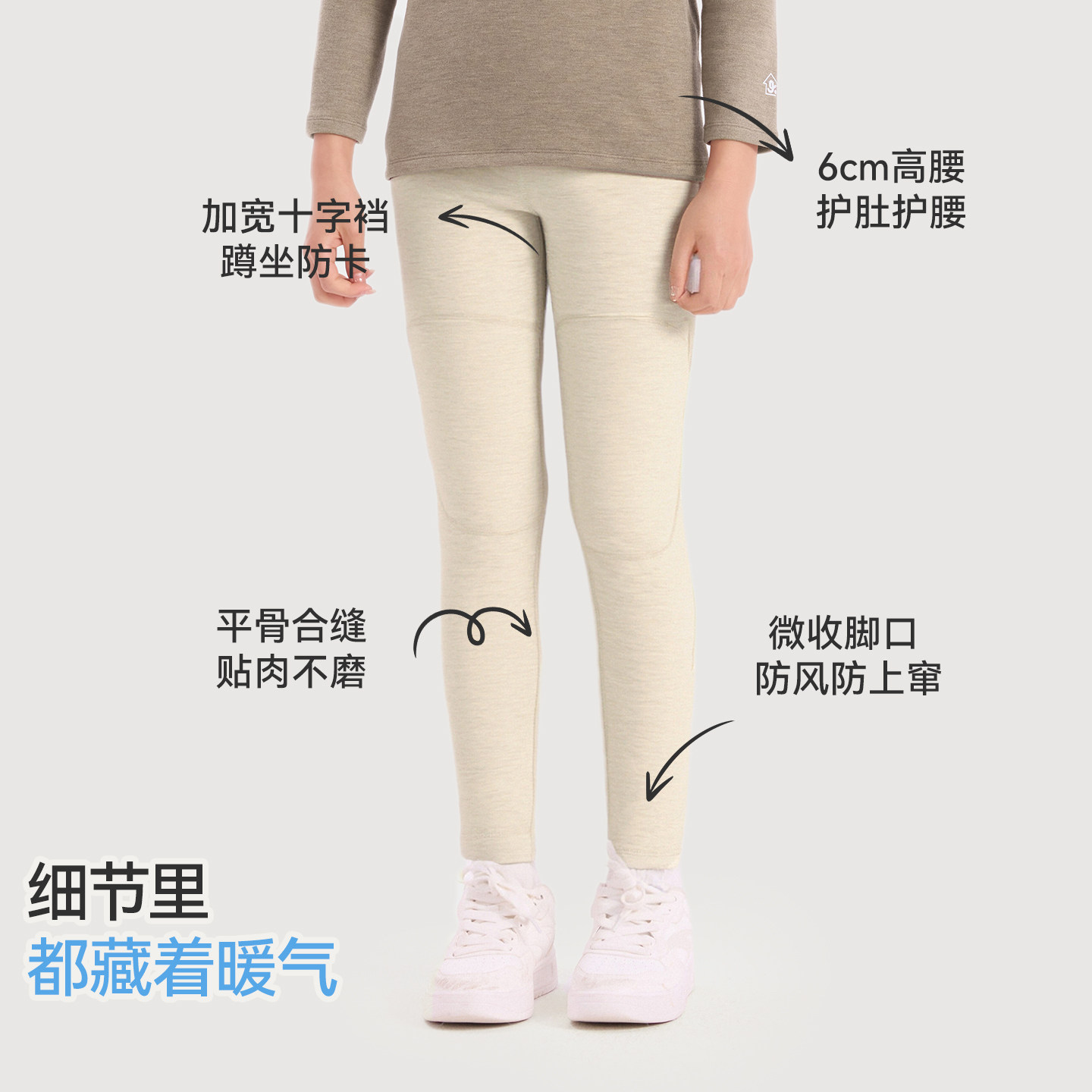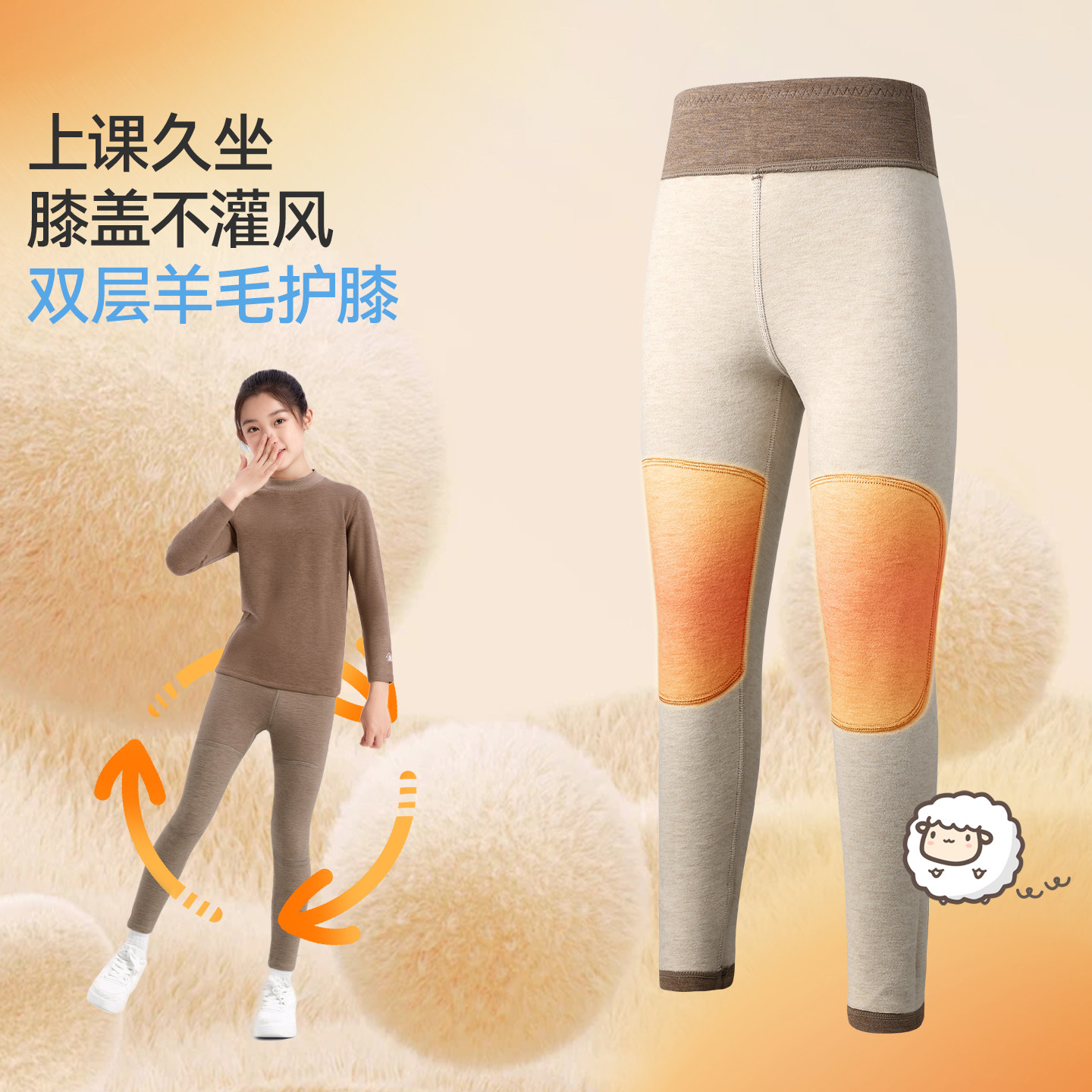 久岁伴儿童保暖裤秋冬新品男女童蚕丝绵羊毛护膝青少年运动长裤