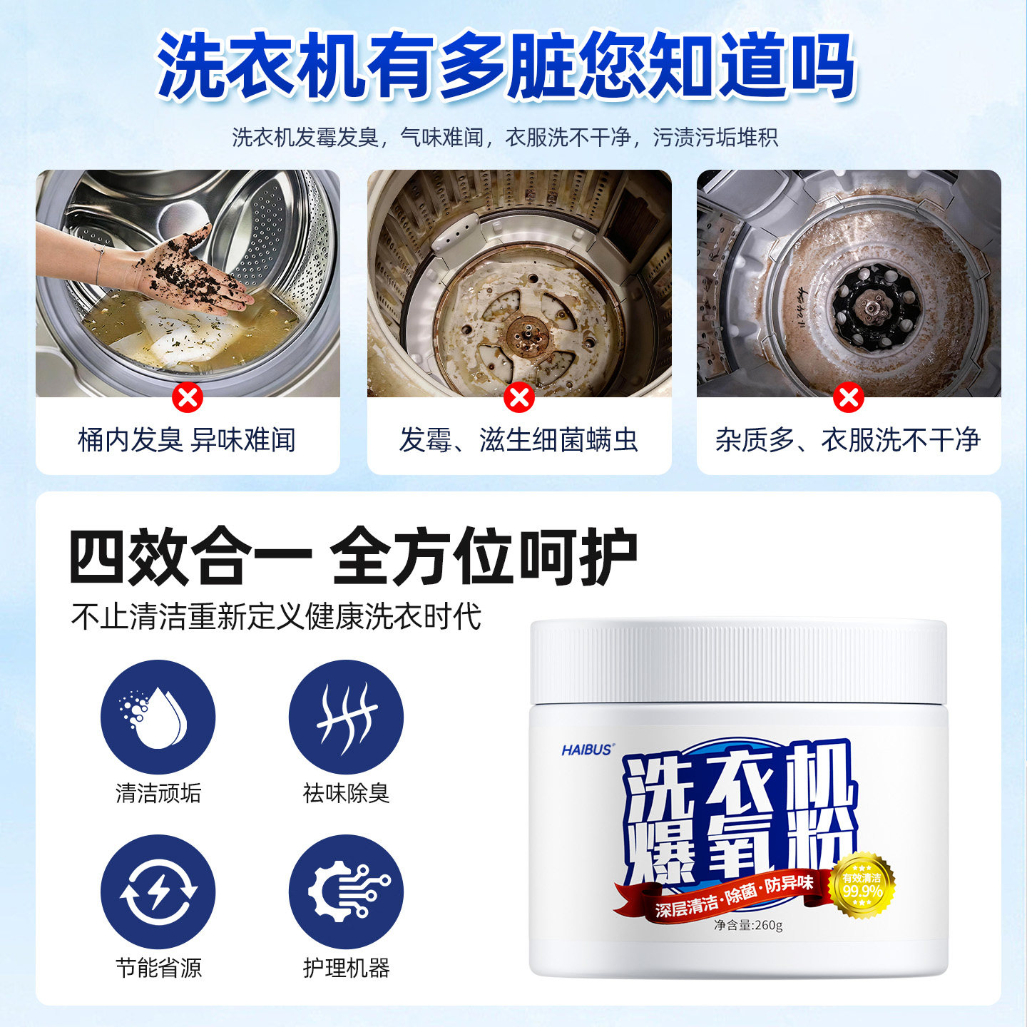 水卫士洗衣机清洗剂深层清洁除垢除菌活氧去污