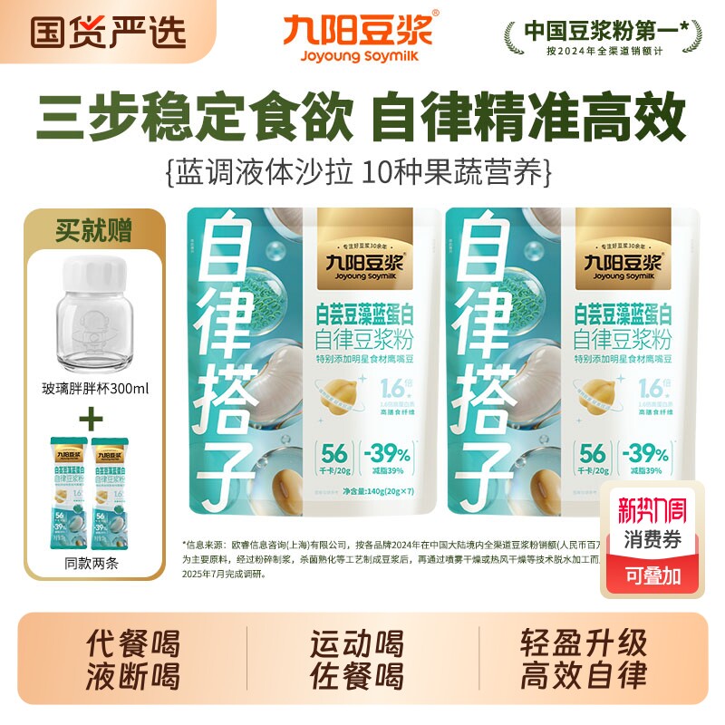 【自律搭子】九阳豆浆白芸豆藻蓝蛋白自律豆浆粉代餐粉健身饱腹
