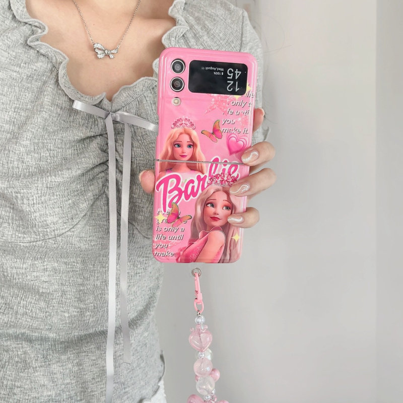 ins日韩芭比娃娃适用于Galaxy三星Zflip5手机壳新款创意zflip4折叠屏zflip3防摔w23flip手链保护套