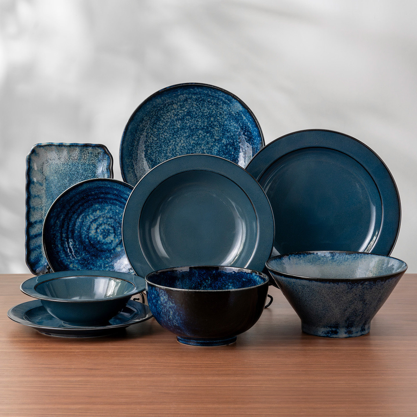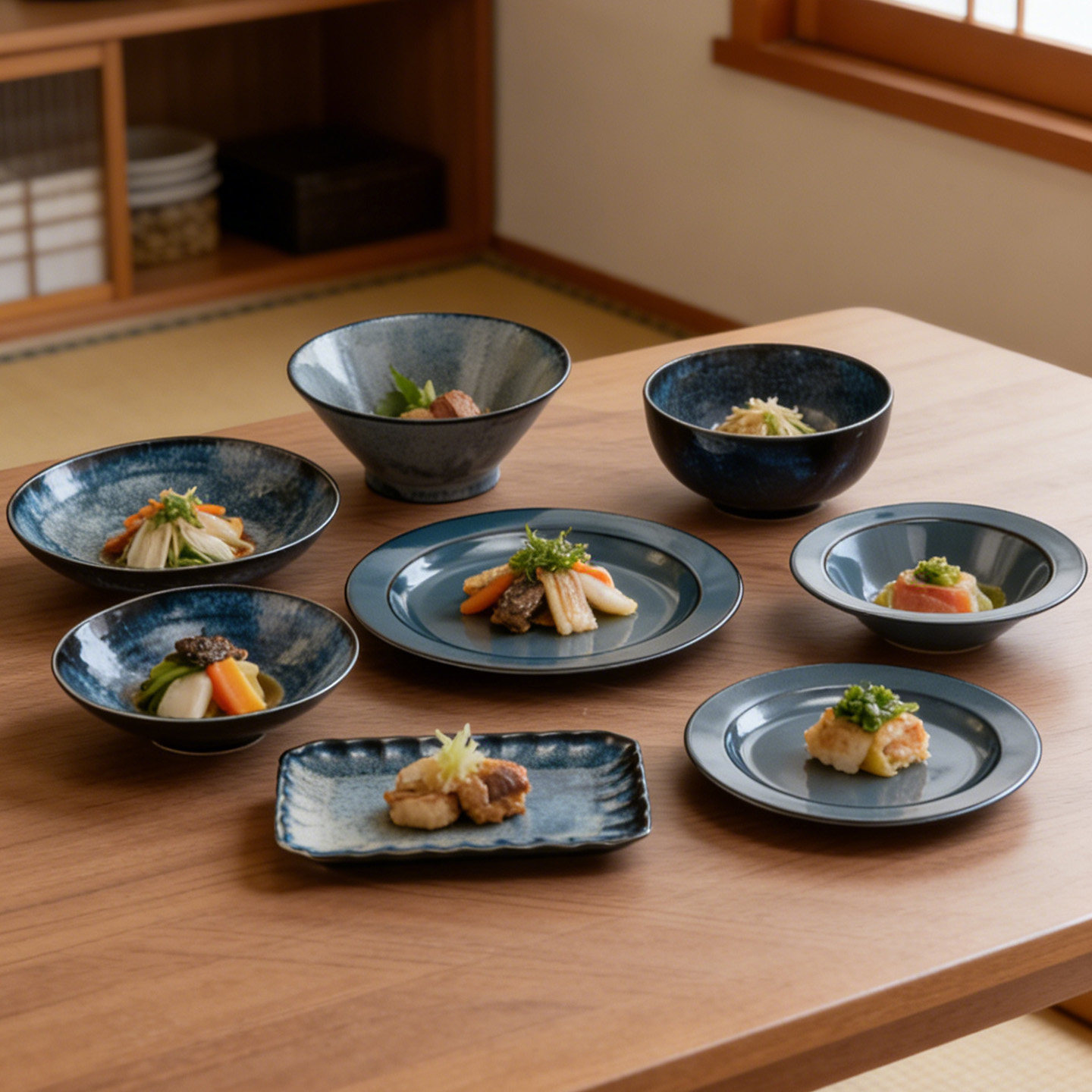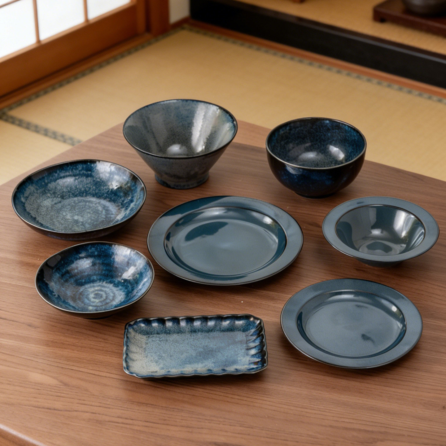 美浓烧-天目釉瓷器釉下彩餐具进口家用米饭碗汤碗和风拉面碗碟盘