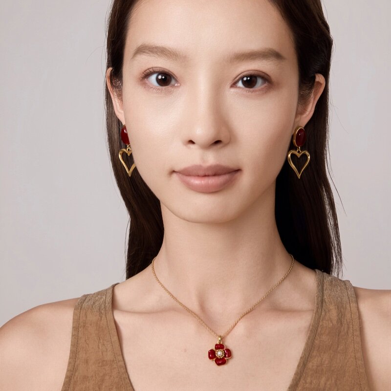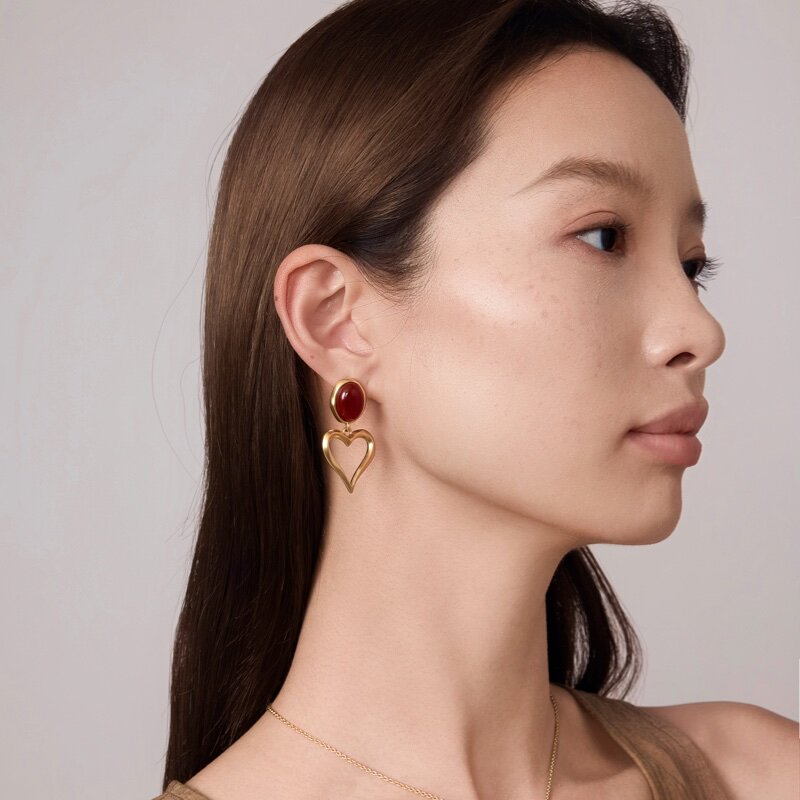 Fellala/翡拉拉「简奢时尚5.0」系列玛瑙爱心耳环时尚耳饰饰品女