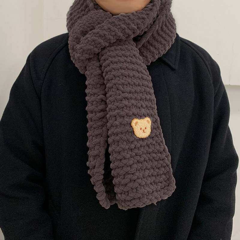珊瑚绒小熊围巾毛线手工diy材料包编织线团织围巾送男友棒针神器