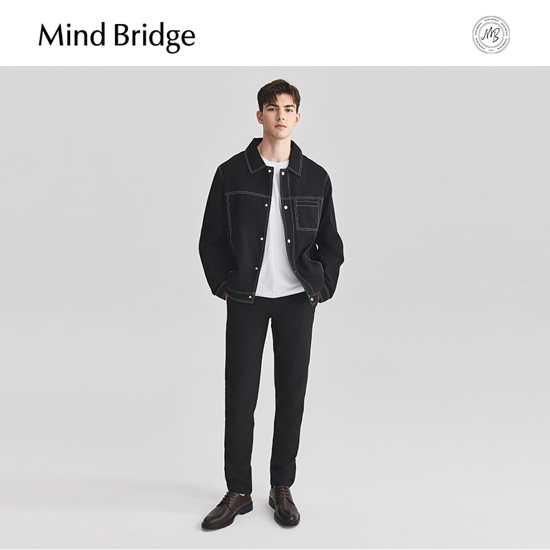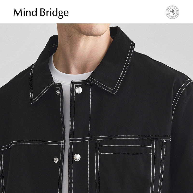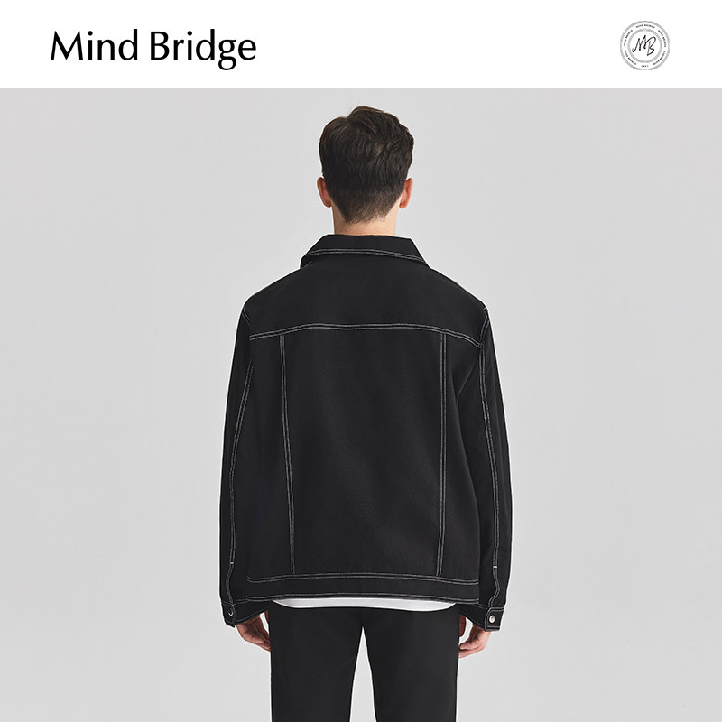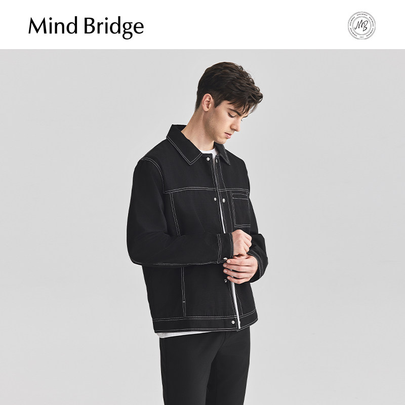 Mind Bridge2026年春季新款休闲黑色夹克外套男士韩版翻领上衣