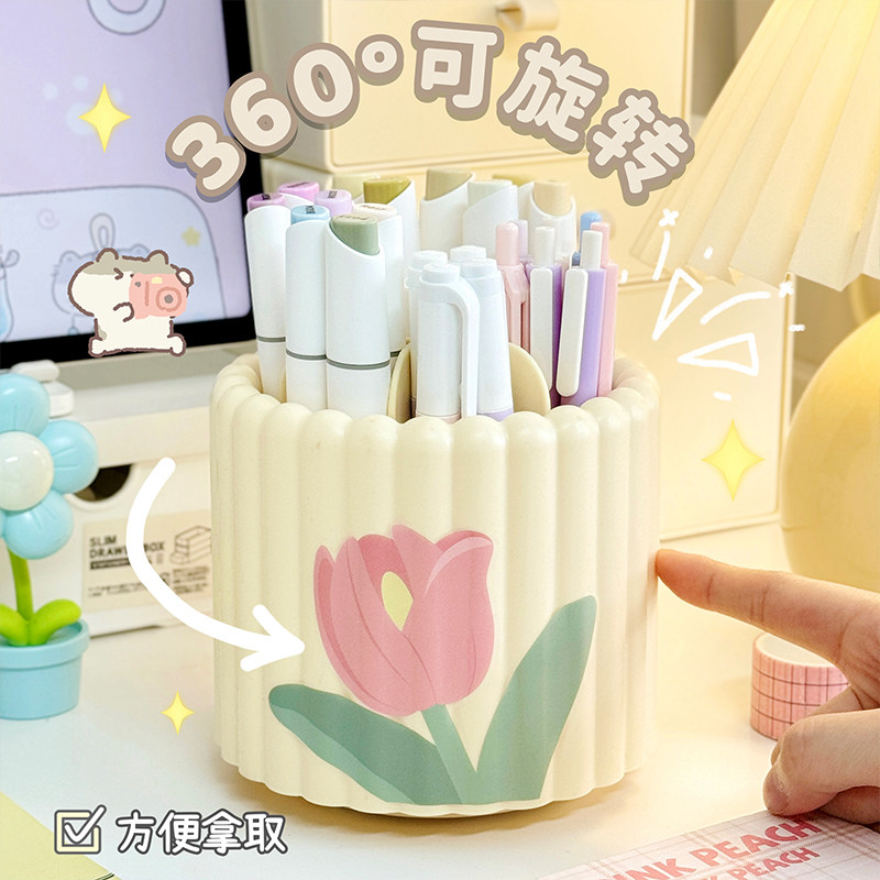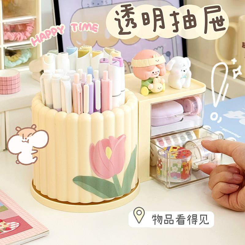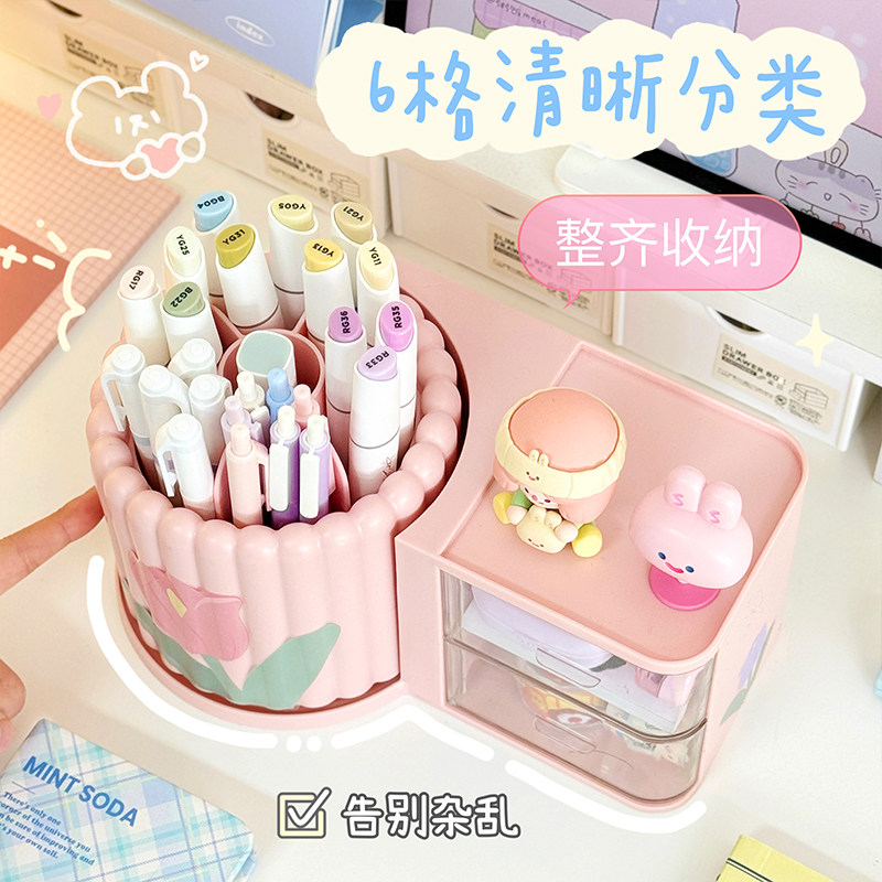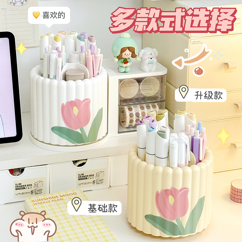 学生宿舍桌上旋转收纳笔筒可爱女生桌面文具收纳盒家用杂物置物架
