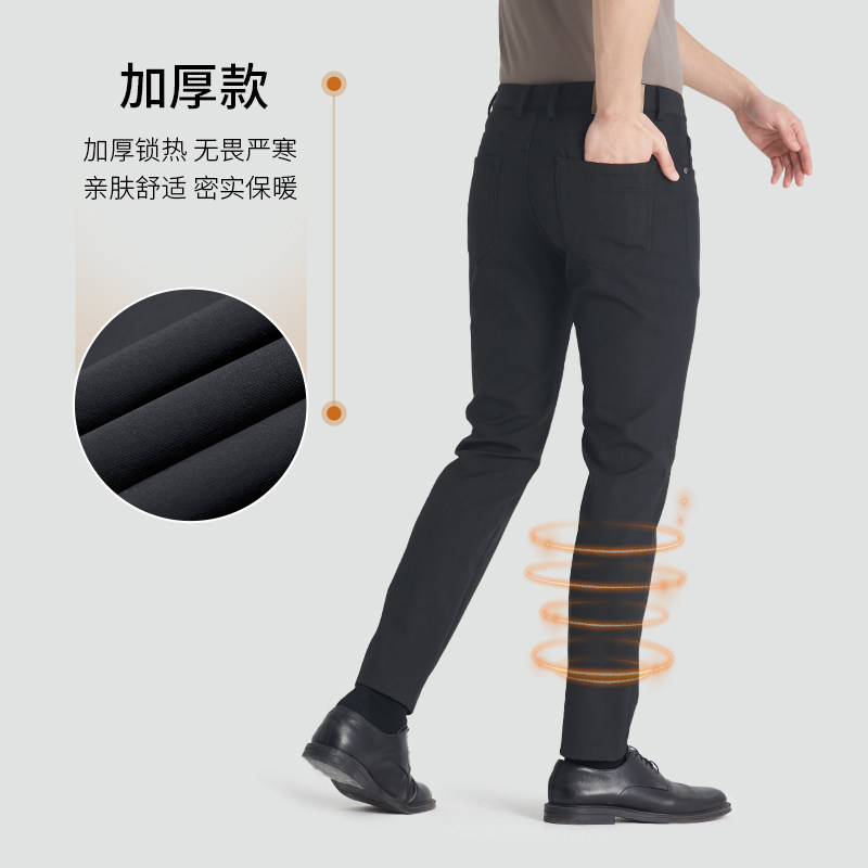 罗蒙加绒加厚男士休闲裤商务休闲秋冬季新款弹力直筒西裤秋冬款