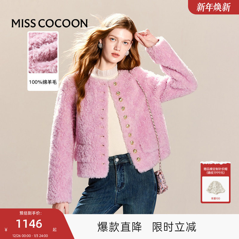 可可尼COCOON2025高级小香风外套女秋冬2025新款粉色皮草短款上衣