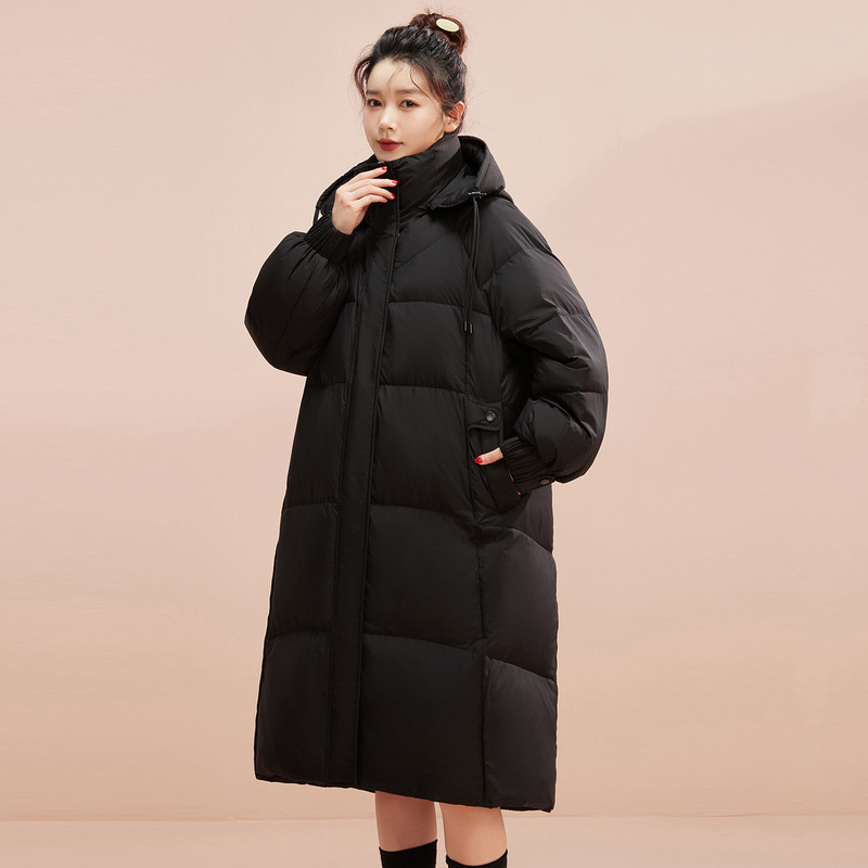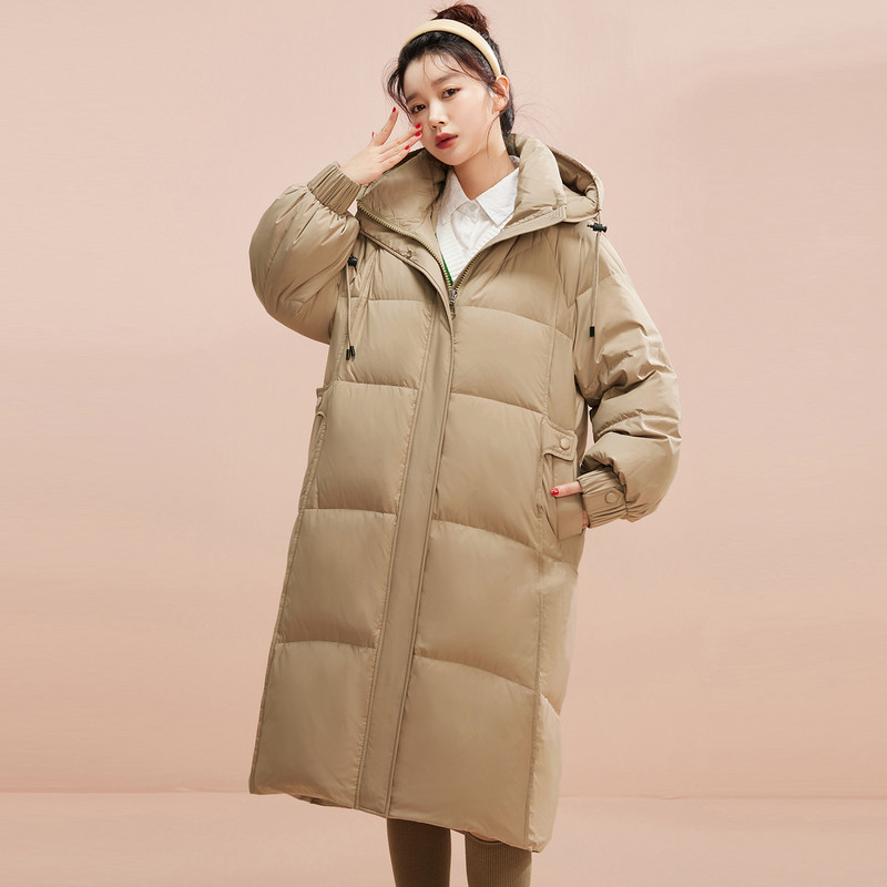 雪中飞2025秋冬新款女士长款连帽羽绒服韩版纯色简约休闲宽松加厚