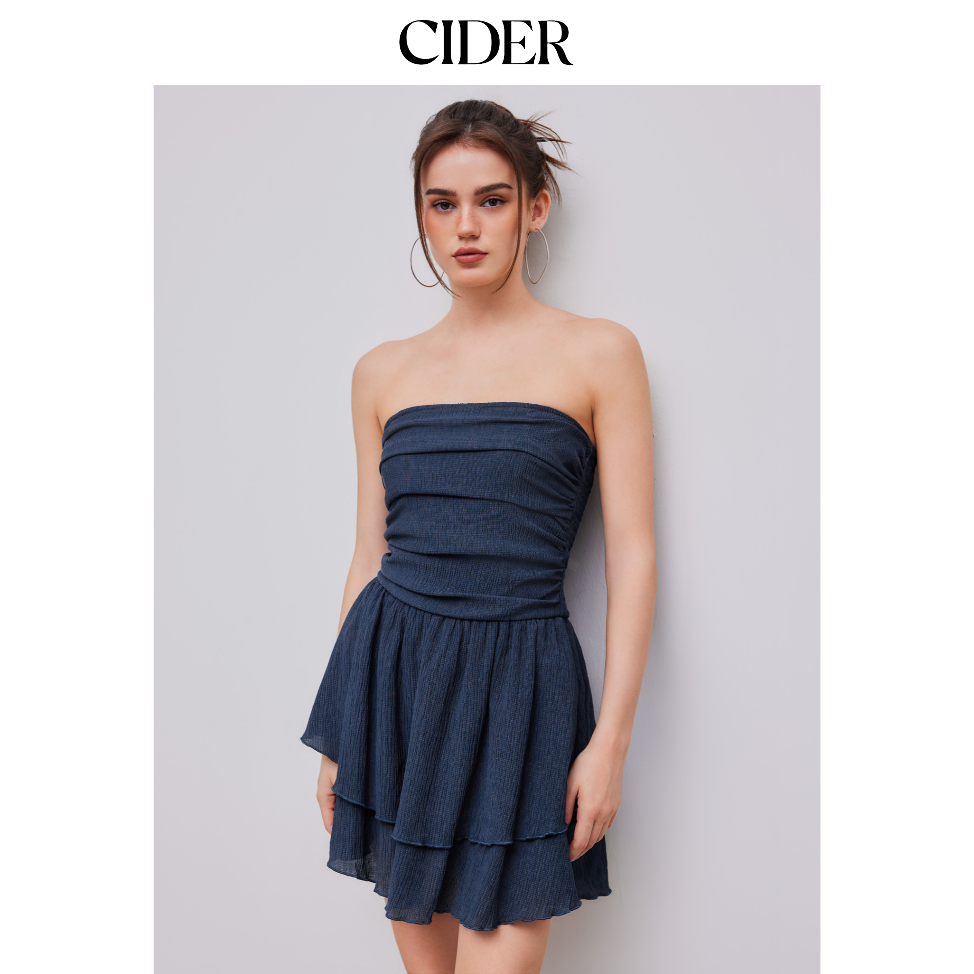 【明星同款】CIDER 正品褶皱夏荷叶边设计抹胸连衣裙1033637