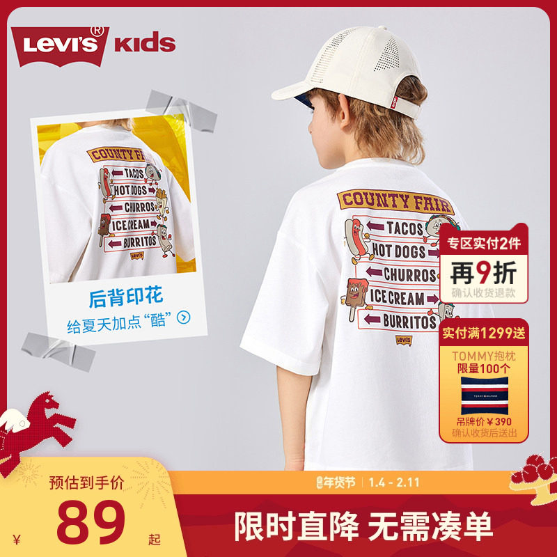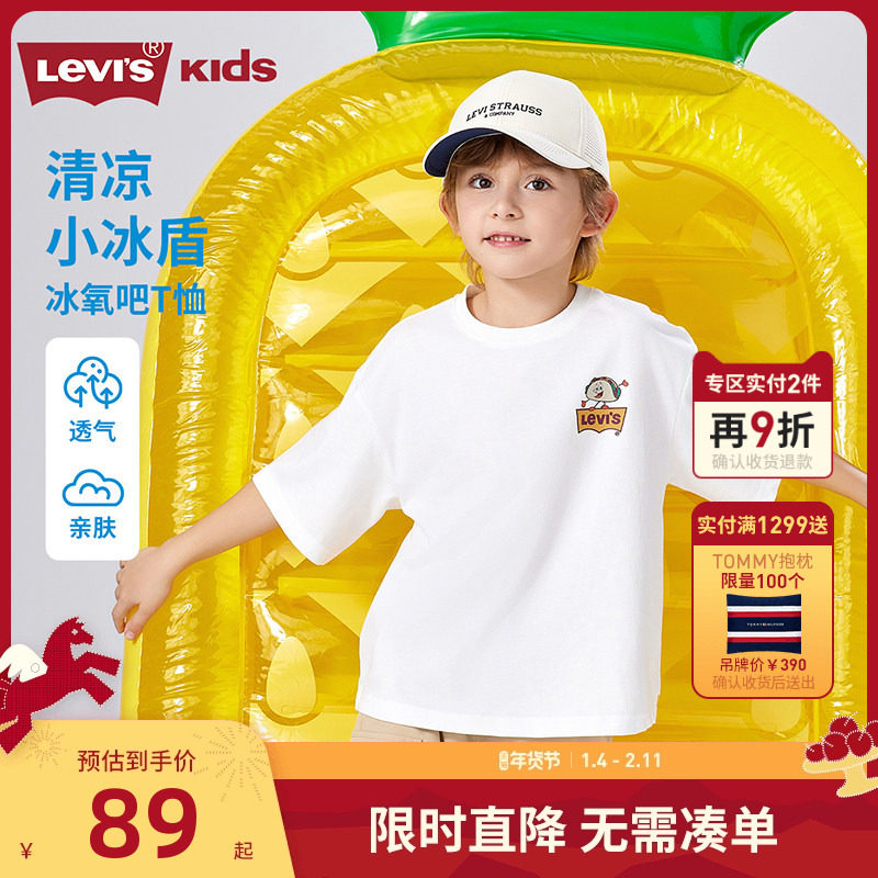 Levis李维斯男女童短袖冰感T恤儿童夏季上衣2025新款男孩半袖夏装