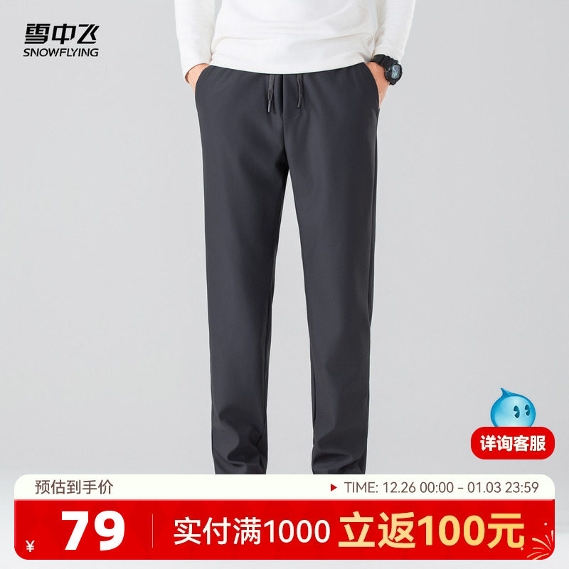雪中飞2025冬新款男士休闲裤时尚松紧腰直筒商务百搭舒适小脚裤