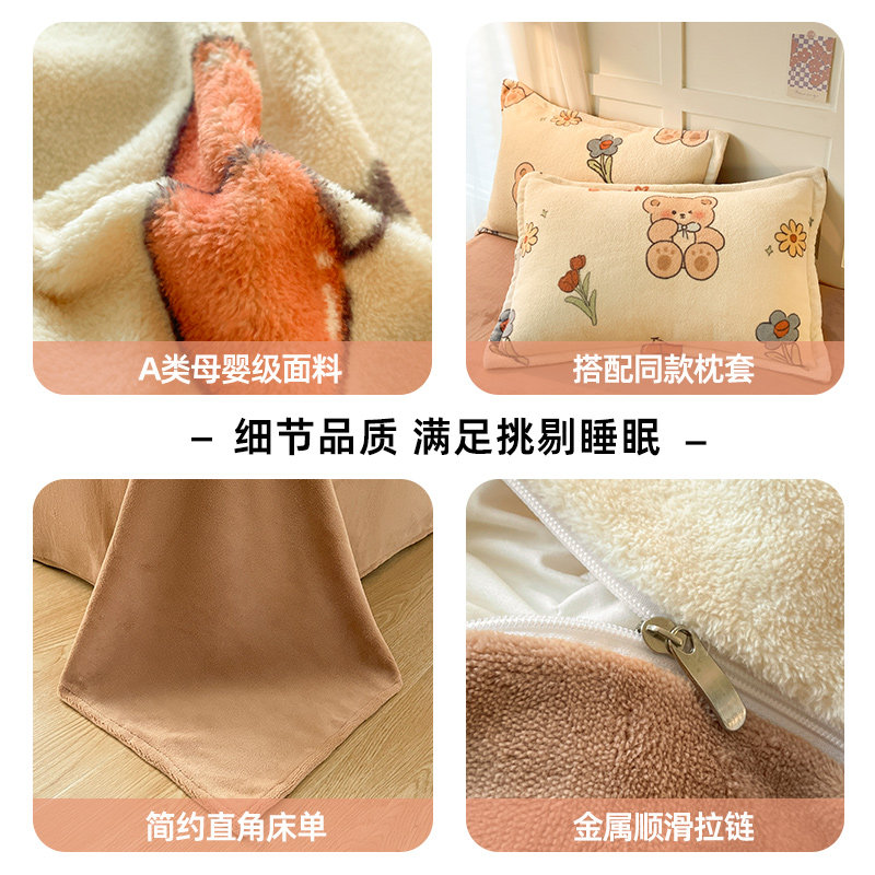秋冬季加厚四件套牛奶绒被套床单双面加绒被罩床笠学生宿舍三件套