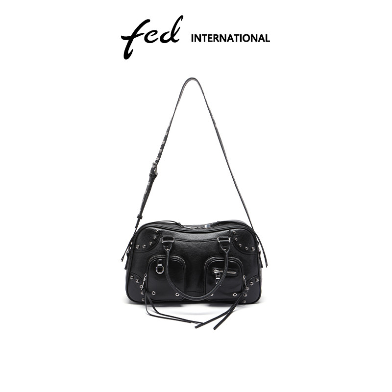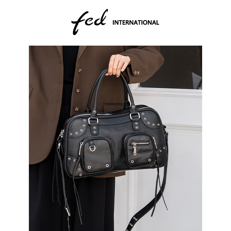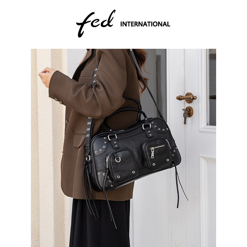 fed植鞣头层牛皮真皮女包机车包单肩手提斜挎女士波士顿包BFA9480