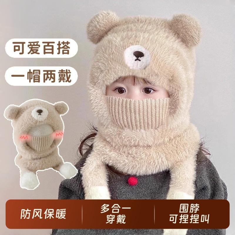 尼多熊儿童帽子围巾一体冬季防风帽宝宝毛绒护耳帽女童加厚保暖帽