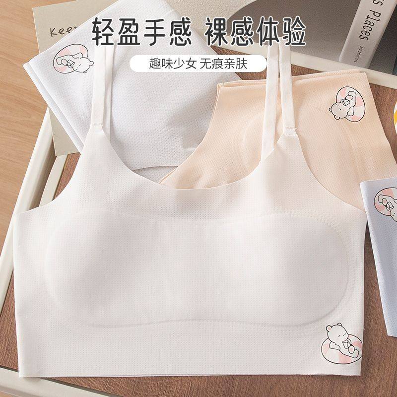 女童内衣发育期小学生初中生少女吊带小背心防凸点防滑固定趣味