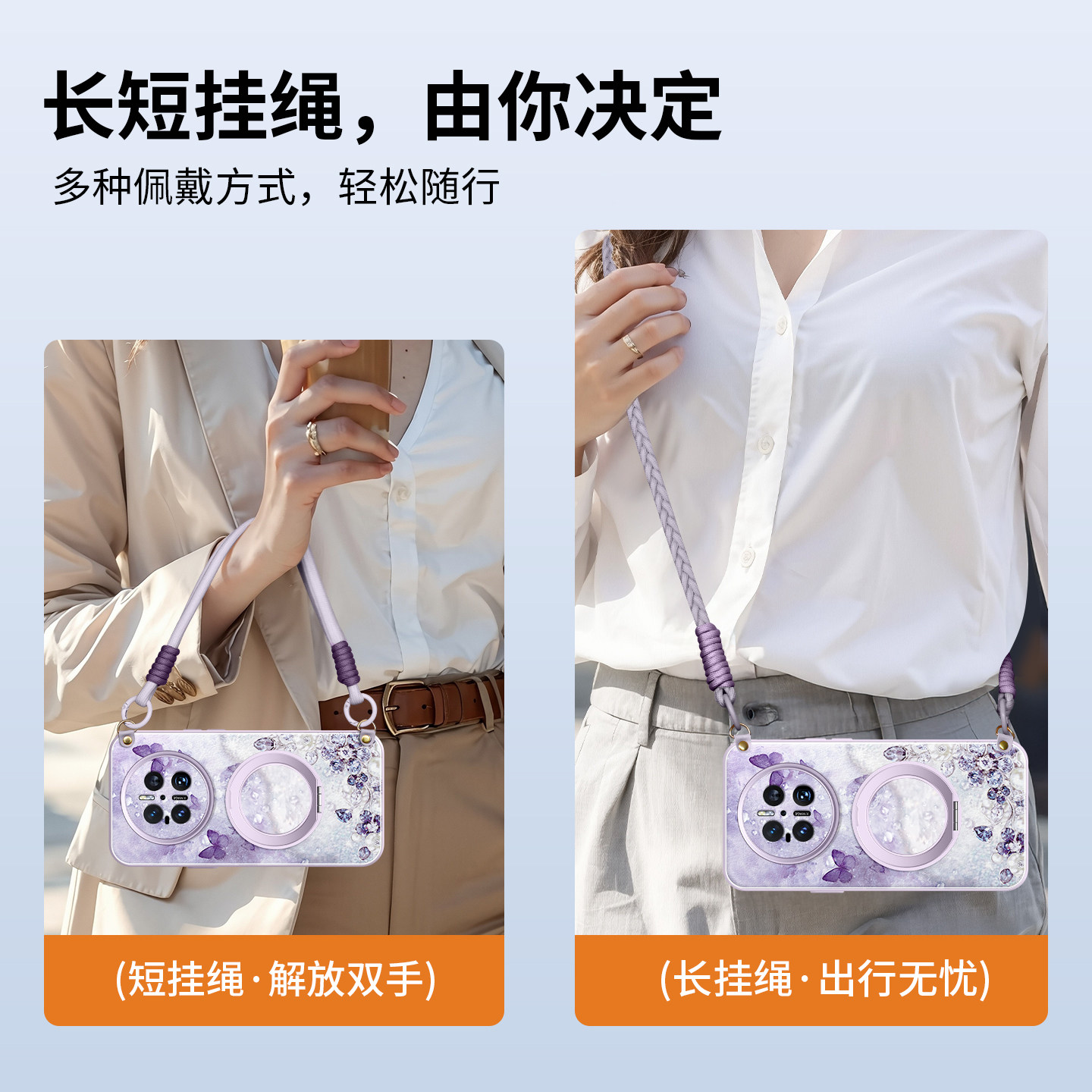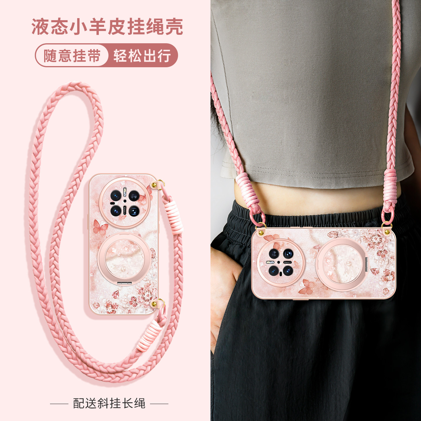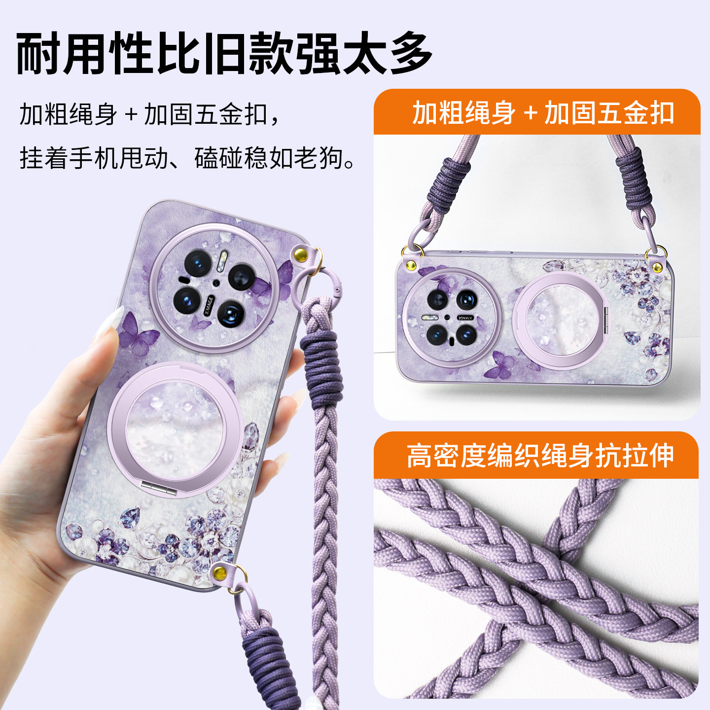 适用华为mate60pro手机新款壳mate70磁吸支架外壳mate50保护壳40pro+带挂绳防摔meta30镜头全包mt高级感女十