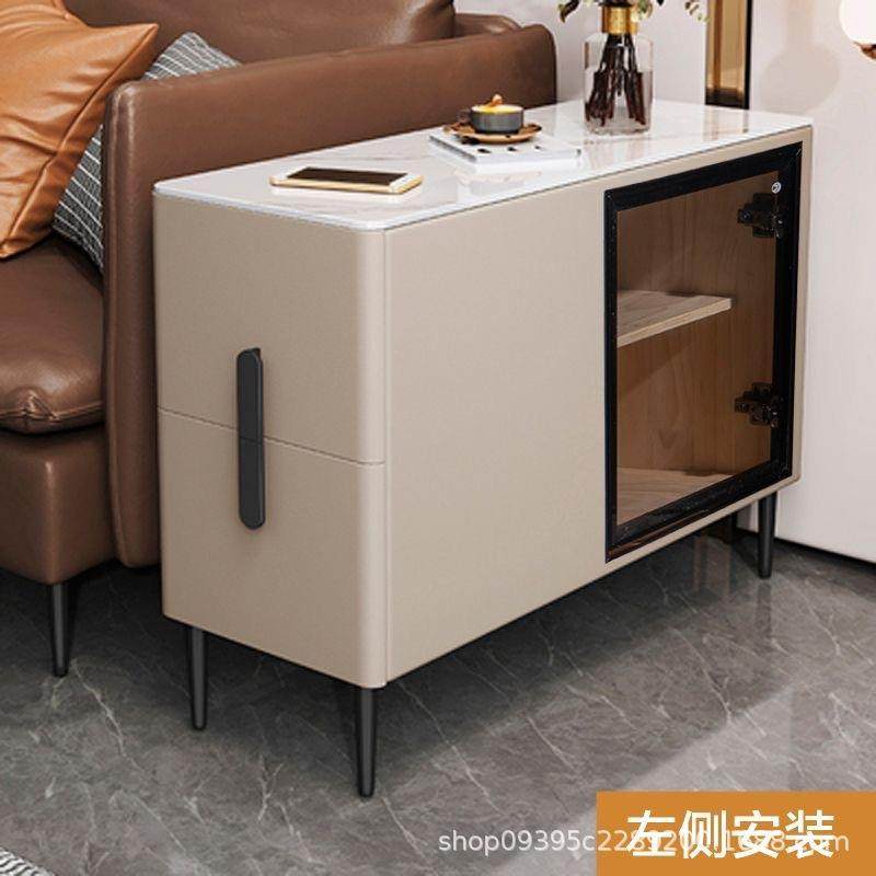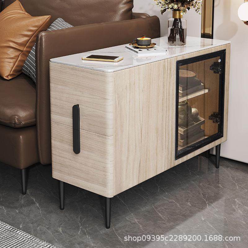 2023款高级全实木岩板带抽屉多功能沙发边柜侧边柜现代简约轻奢