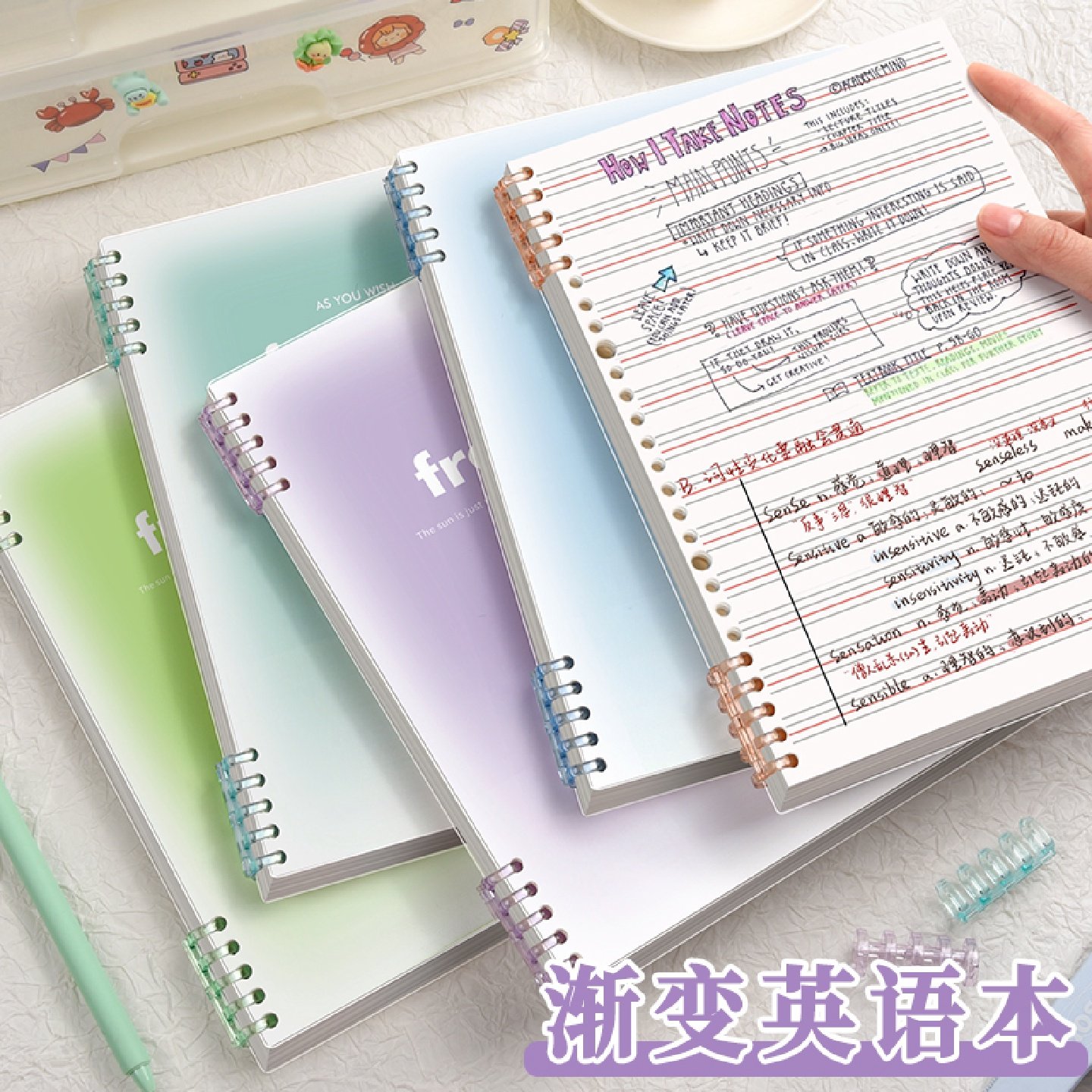 高颜值渐变活页英语本笔记本子可拆卸加厚初高中生b5英文本单词本