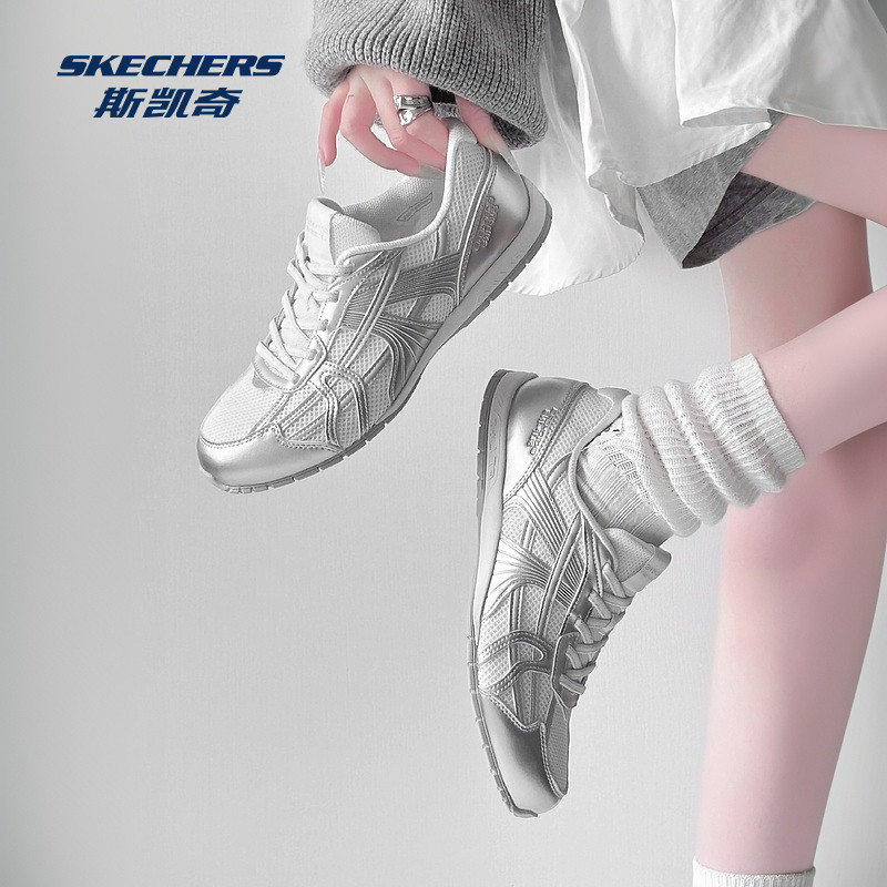 斯凯奇闪穿德训板鞋女2025冬季新款透气舒适低帮休闲户外时尚潮流