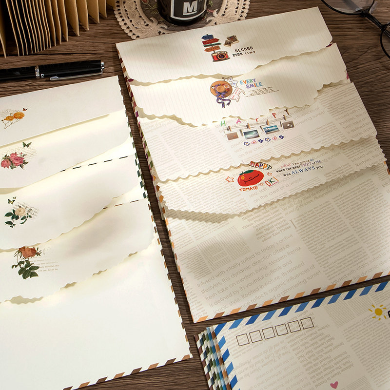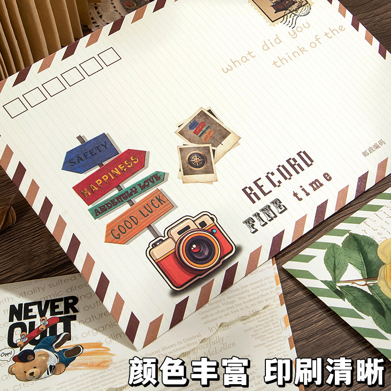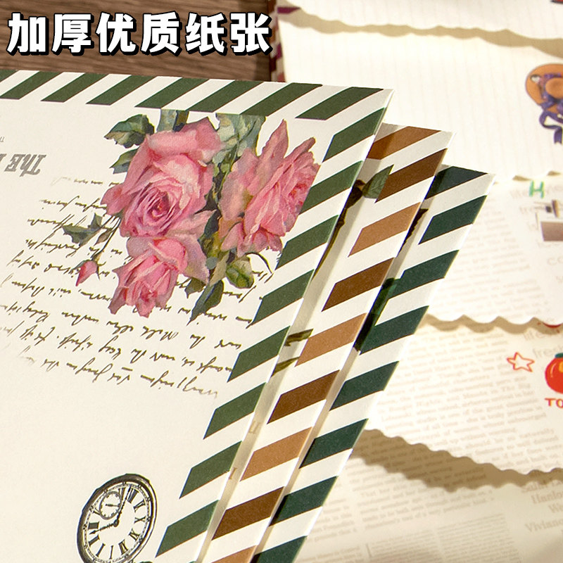 航空复古花系信封创意文具鲜花图案信封套装学生用品文艺手写信纸情侣表白情书礼盒精致印刷仪式感礼物高颜值