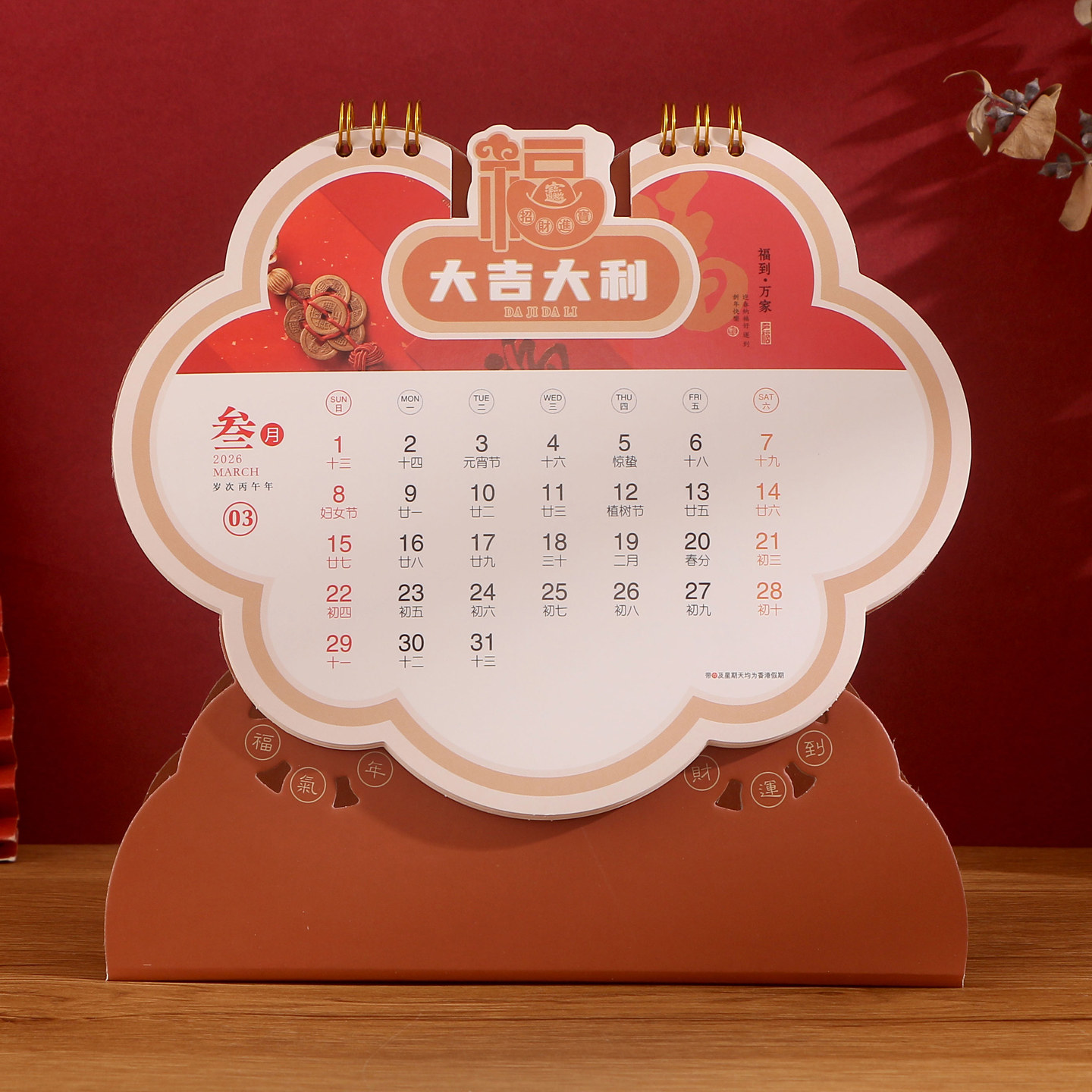 马年台历2026年创意吉庆造型新款桌面摆件记事国潮新年礼品台历印刷设计定制中国风家用公司企业月历订制广告