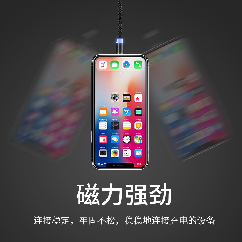 加长2米磁吸数据线快充3A闪充适用华为vivo小米oppo三星苹果type-c安卓手机ipad平板通用强力磁铁头充电器线