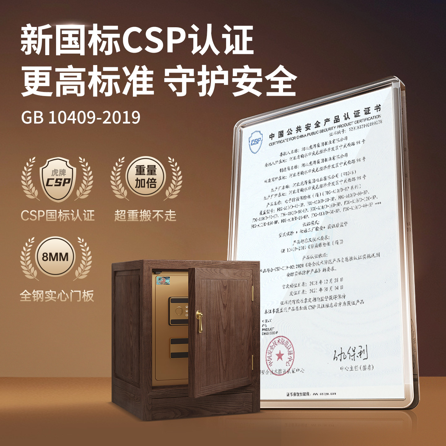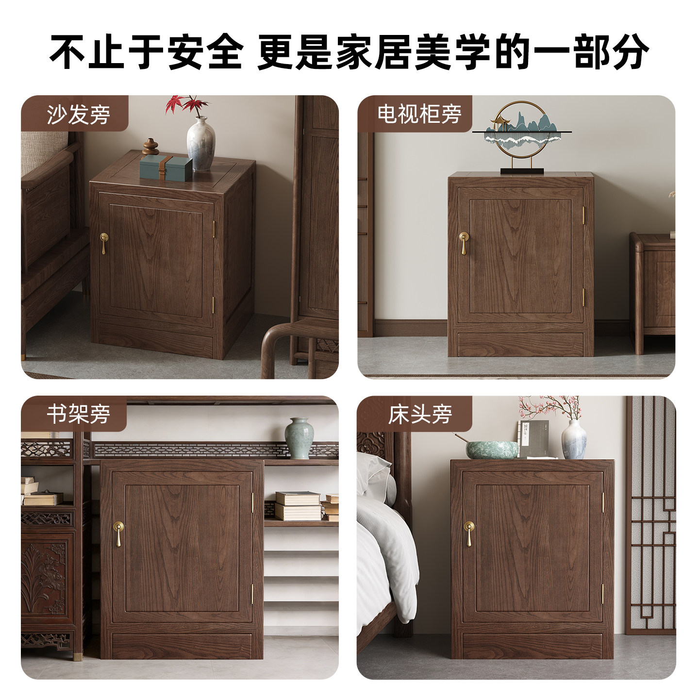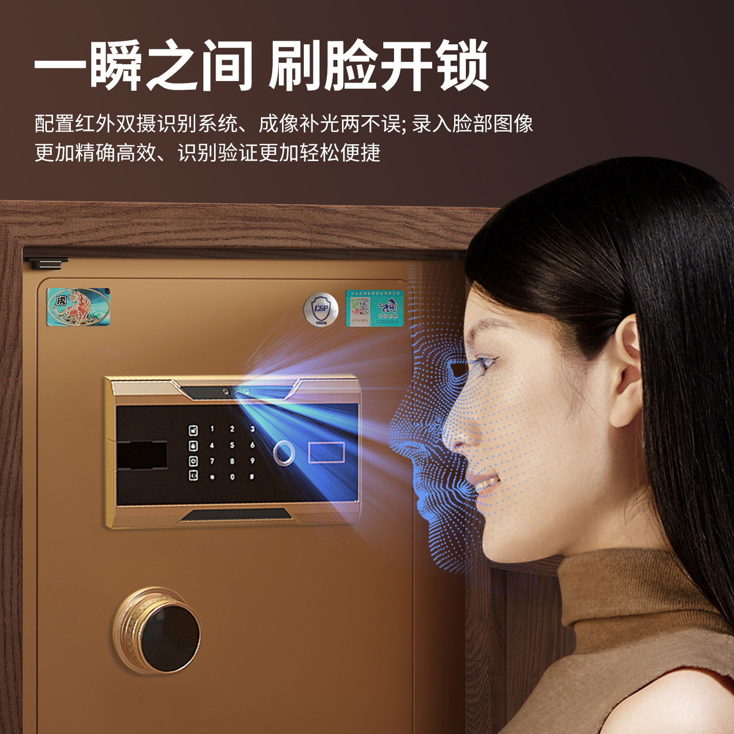 虎牌保险柜家用2026新款实木宋氏美学保险床头柜小型CSP认证办公保险箱一体隐形防盗指纹密码首饰存钱搬不走