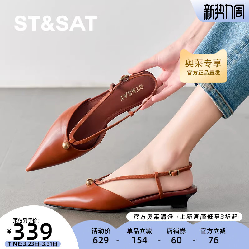 星期六气质尖头凉鞋2025新款时尚通勤约会复古港风女鞋SSD1114177
