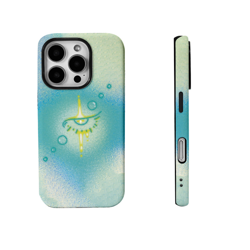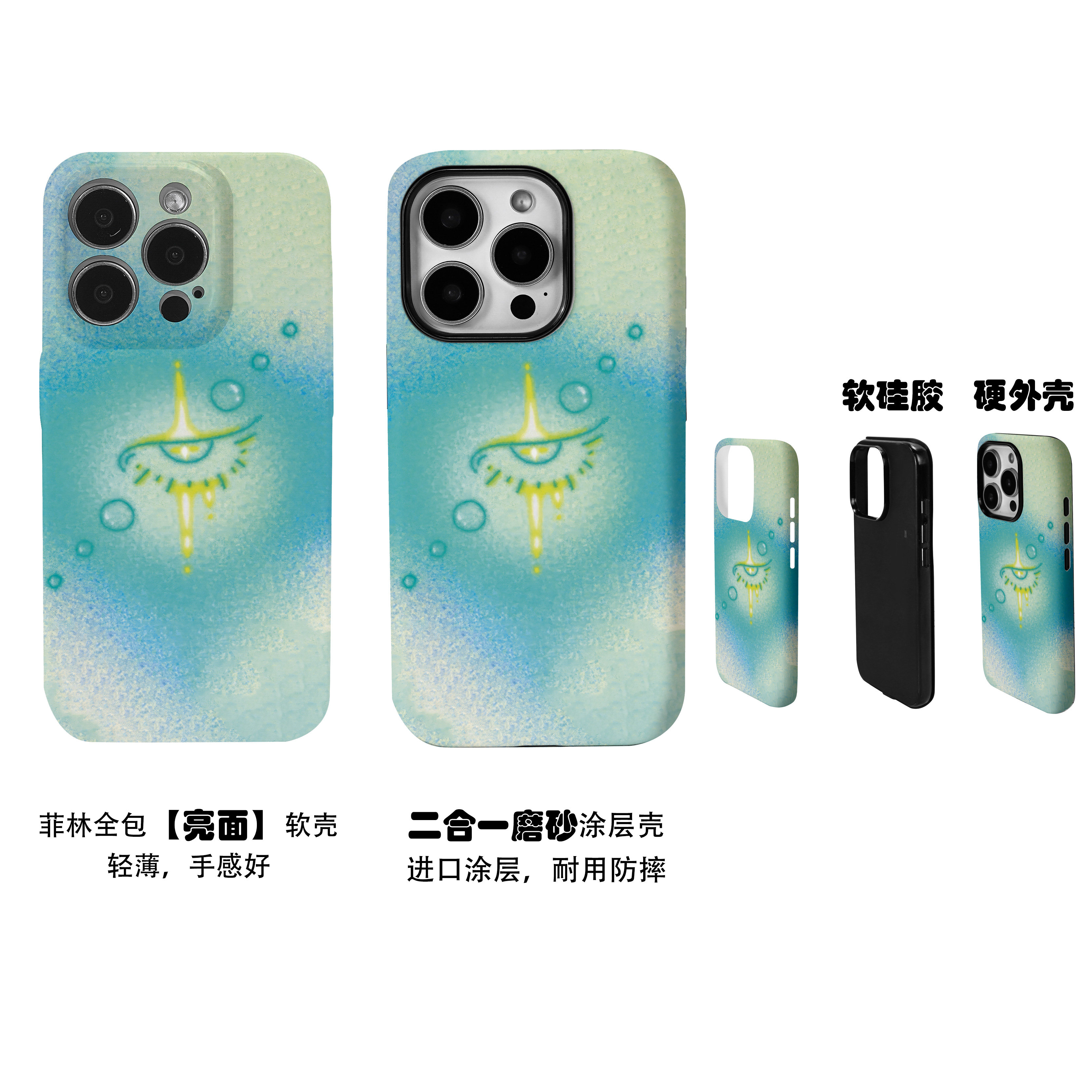 绿色冷淡高级艺术眼睛酷二合一手机壳适用苹果16nova13华为p70mate60小米15opporen13ovivo荣耀300iPhone15