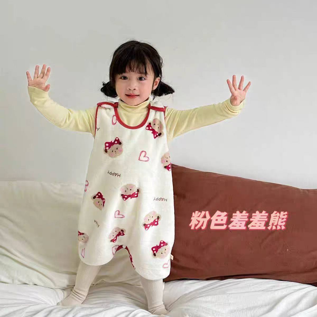 儿童马甲婴儿连体睡衣珊瑚绒睡袋宝宝秋冬款法兰绒背心冬季加绒