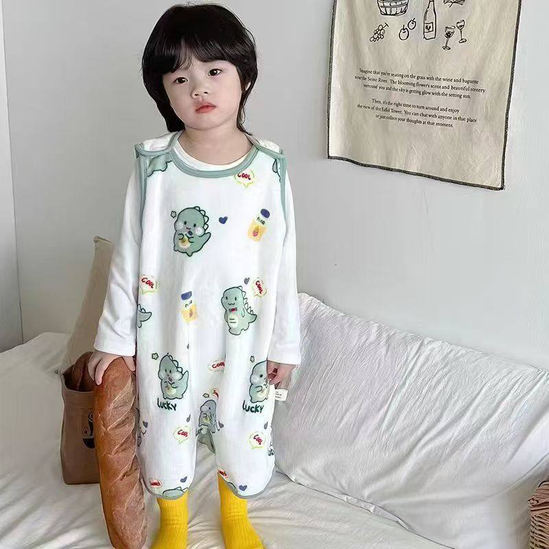 儿童睡袋秋冬加厚纱布中大童恒温睡袍防踢被神器四季通用连体睡衣