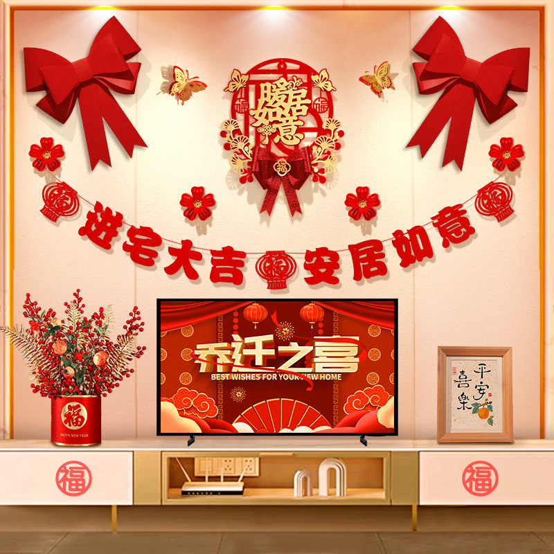 乔迁之喜装饰客厅电视背景墙挂摆件新居布置对联搬家入宅仪式用品