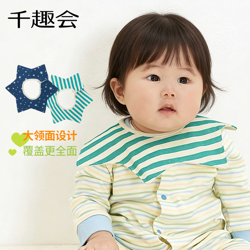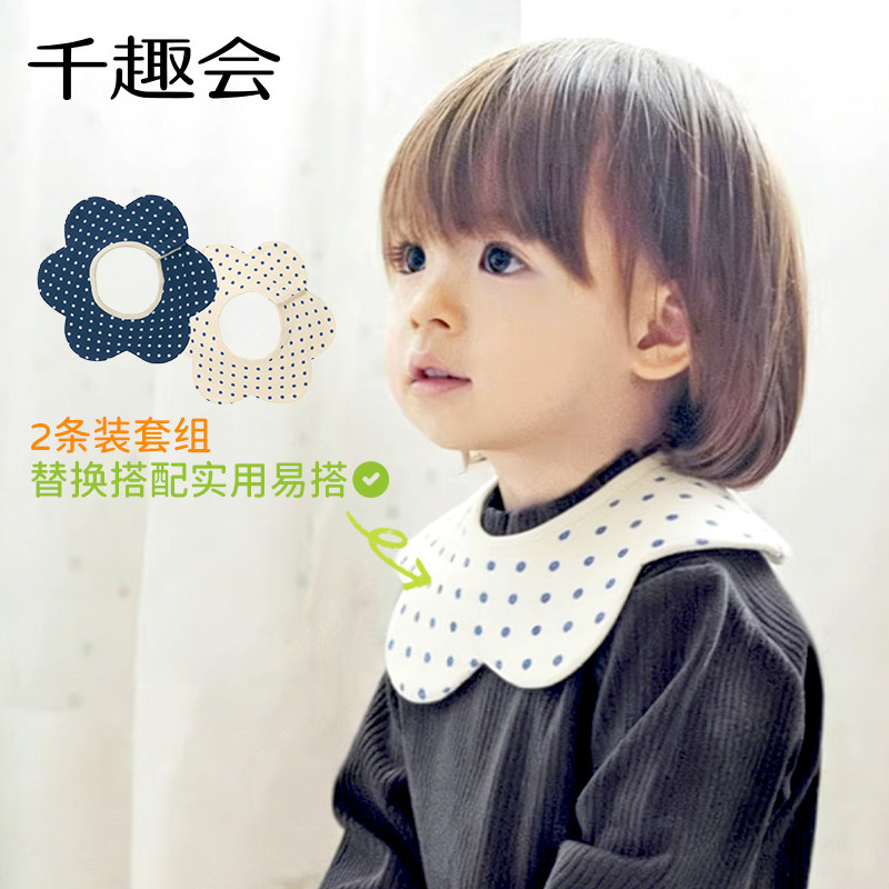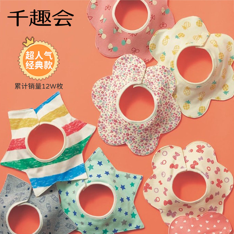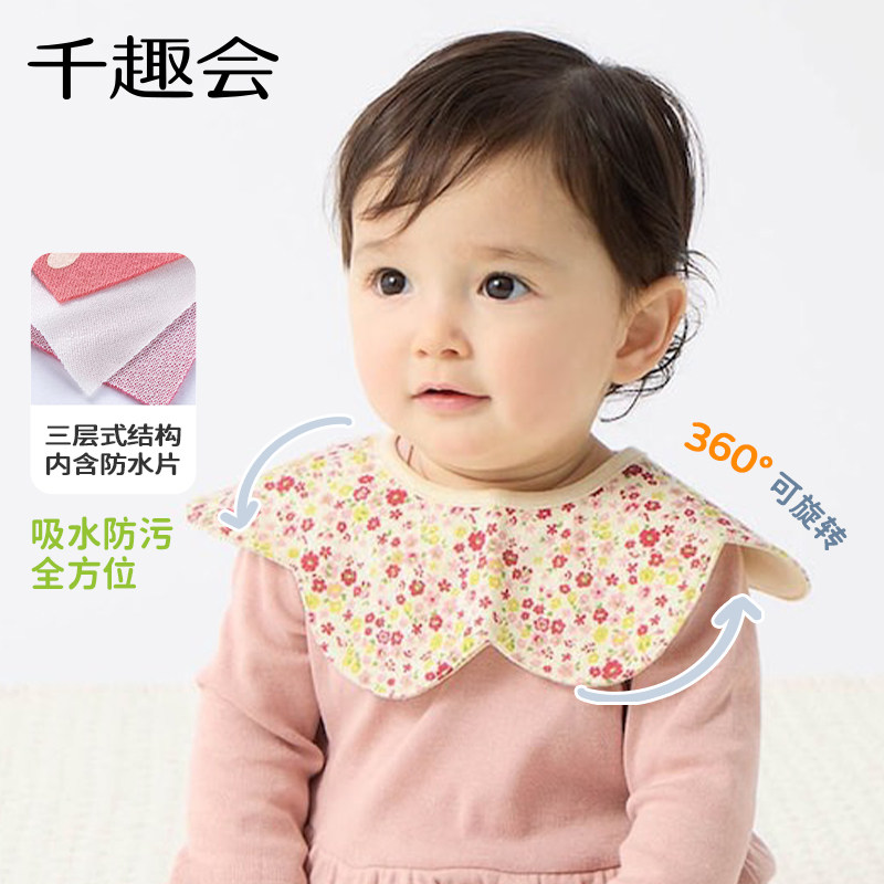 【天猫U先】千趣会婴儿口水巾360度旋转防水围兜饭兜围嘴2条装