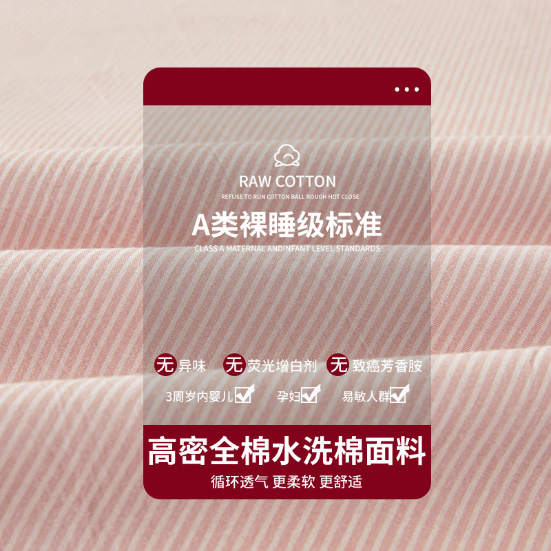 a类老粗布床笠纯棉春夏新款定制床罩纯色简约条纹加厚床单全棉套