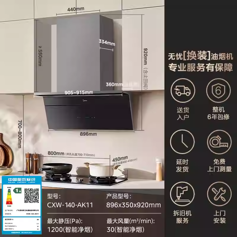 美的小西梅油烟机AK11全自动蒸汽洗2.0 顶侧一体家用厨房大吸力