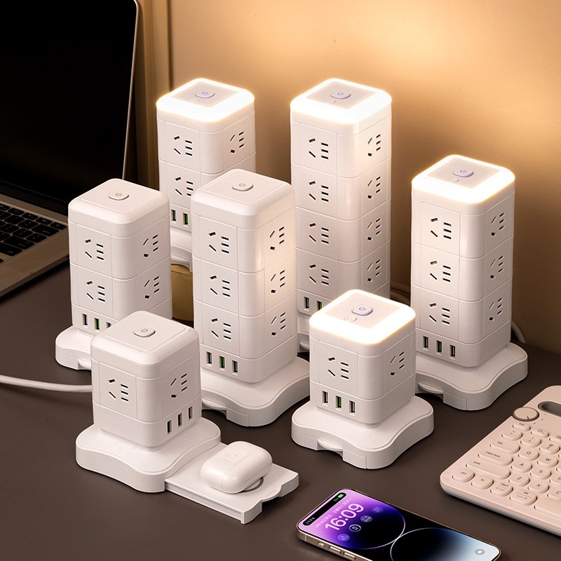 立式多功能插座插排家用桌面办公USB多孔接线板电源无线充插座灯