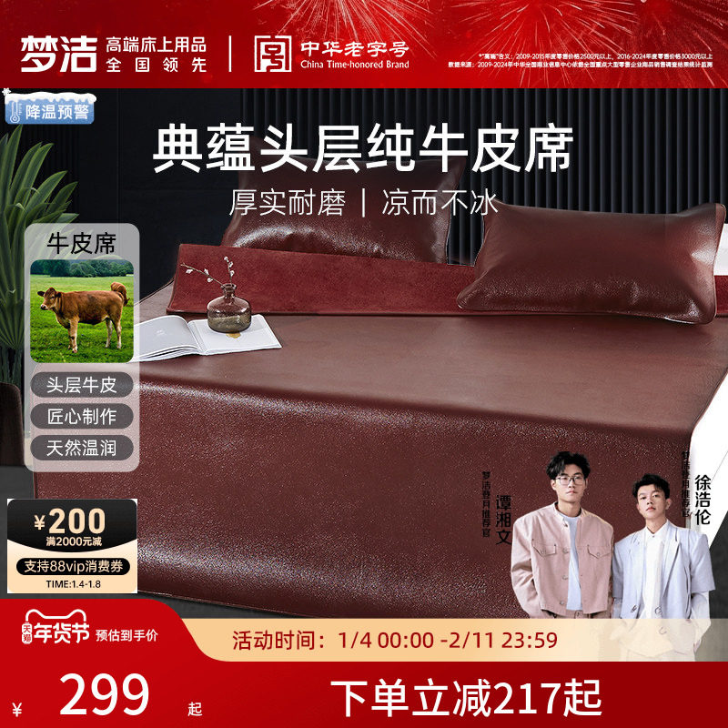 梦洁家纺牛皮席头层牛皮凉席软席1.5米加厚凉席牛皮席子1.8m床