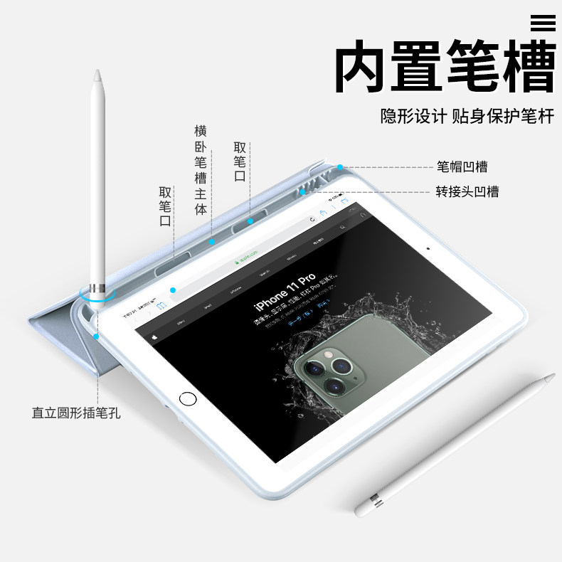 适用ipad保护壳带笔槽11/10代保护套air7平板mini6全包5/4/3三折pro11寸9/8苹果2021防摔2019/2018/2025新款