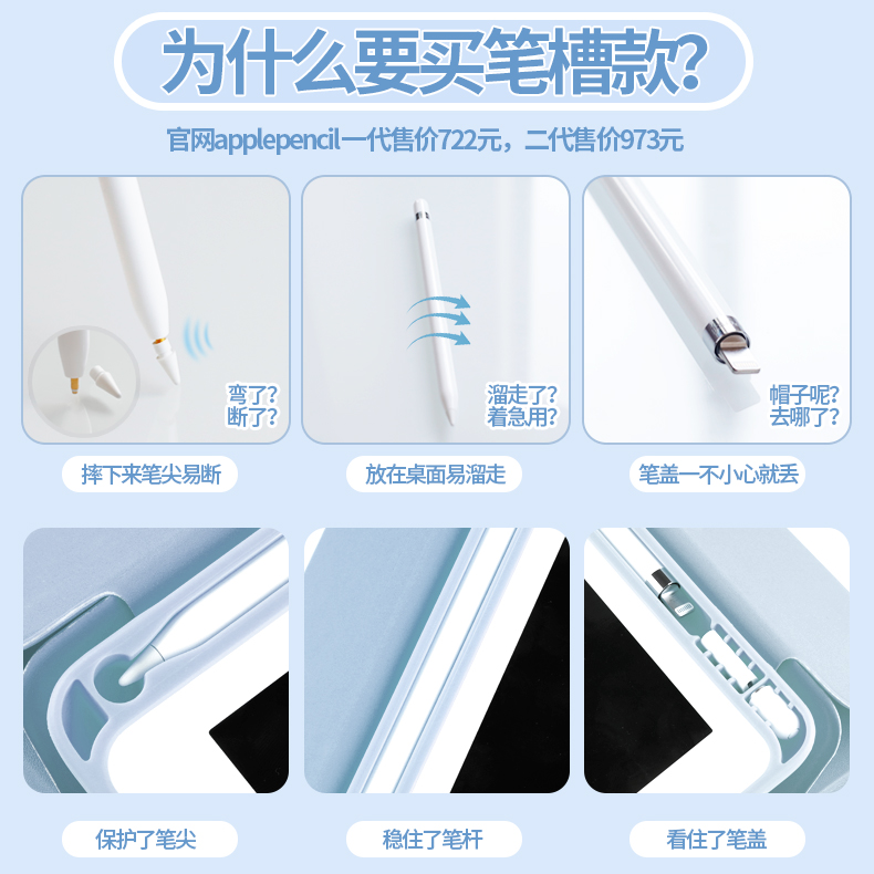 三折带笔槽 全包防摔 手感舒适 支撑稳定