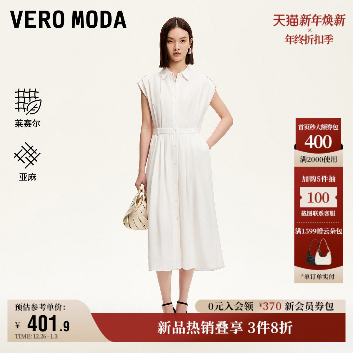 Vero Moda奥莱连衣裙女2025秋季新款含莱赛尔亚麻捏褶长裙优雅