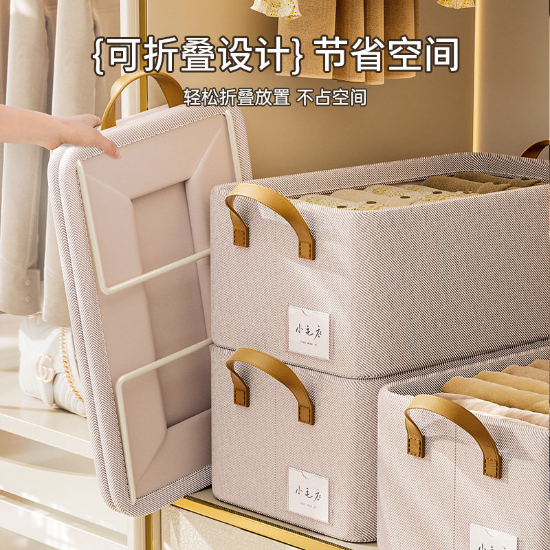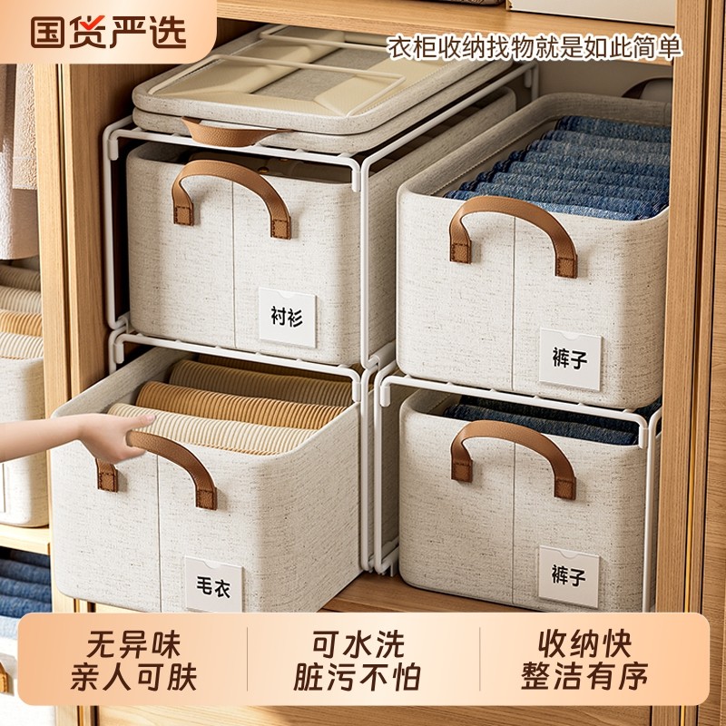 天山棉麻收纳筐衣柜收纳整理分层神器PP板可水洗衣服储物盒收纳箱