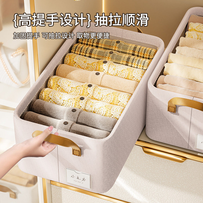 拍1发4衣服收纳筐神器布艺装衣物衣柜分层收纳箱家用框裤子整理盒