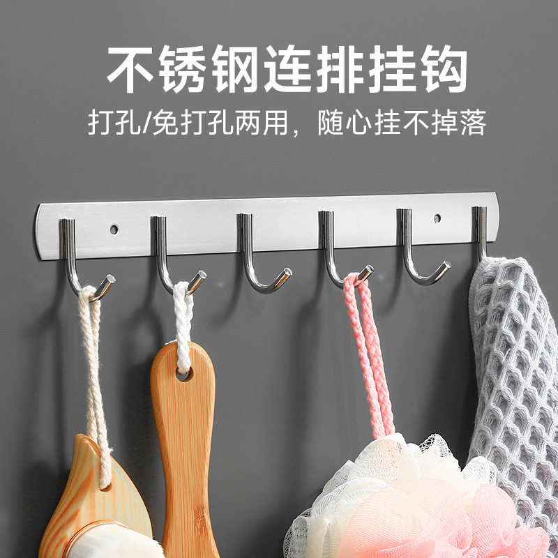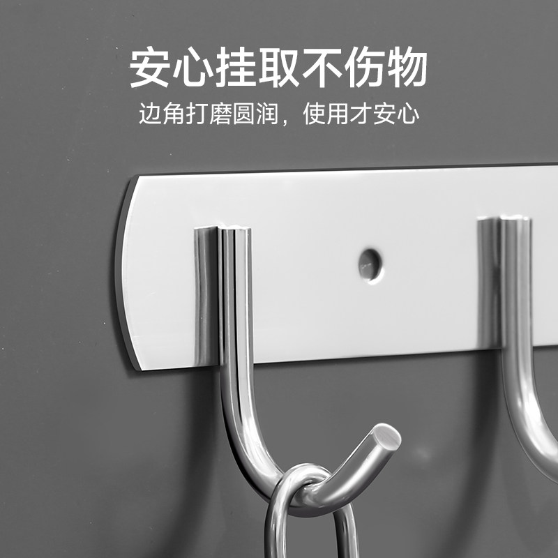 不锈钢挂钩强力粘胶厨房墙壁挂一排粘钩免打孔衣钩卫生间墙上衣架