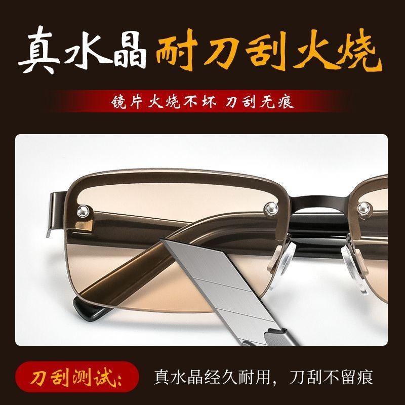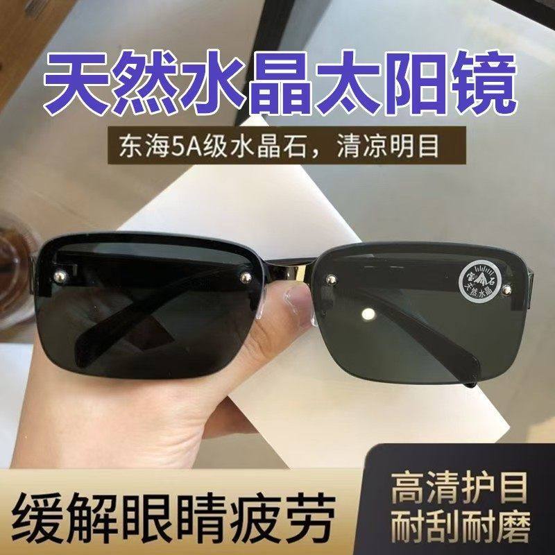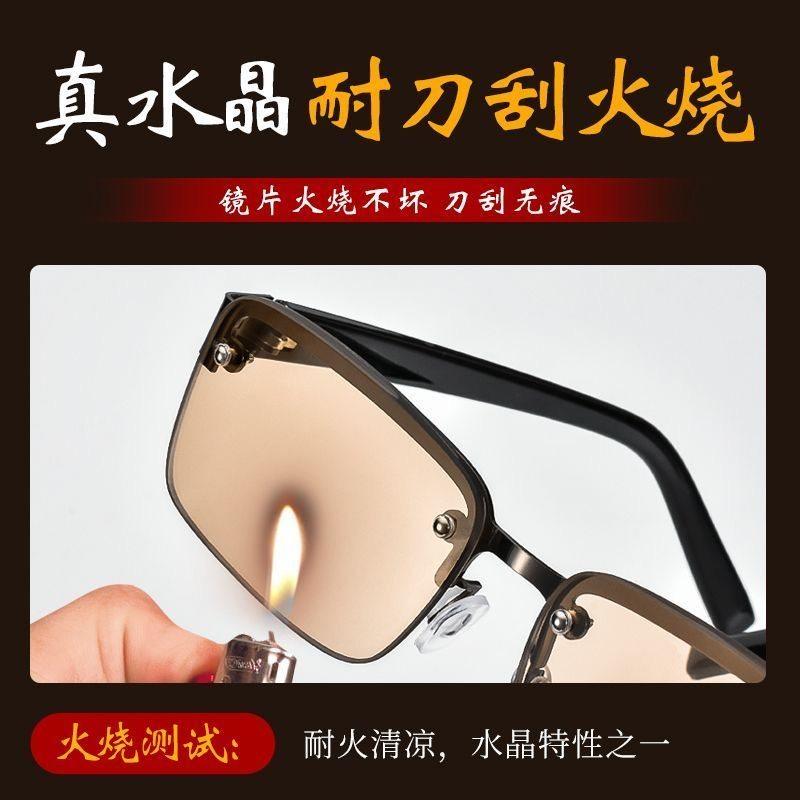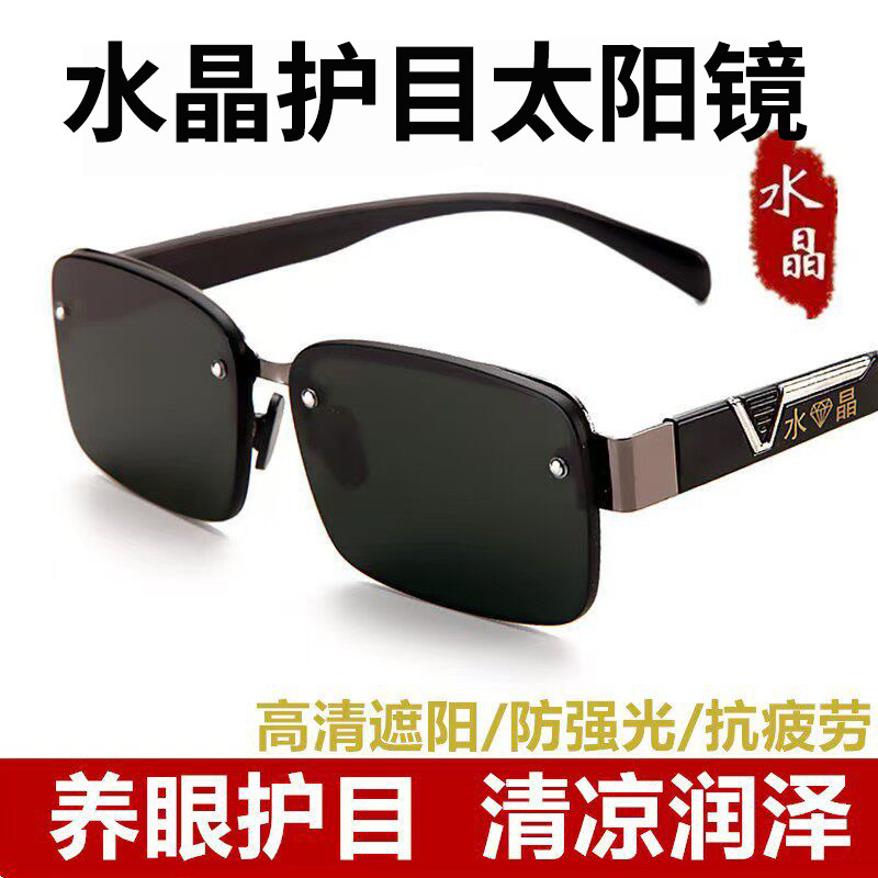 新品无框水晶缘玻璃太阳镜男墨镜平光镜耐磨防风镜大开车偏光镜片